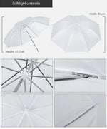 Translucent white umbrella can reduce shadows,soften strong light, producing uniform and soft light.