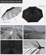 The black/silver umbrella can maximizing light spread and reflects more light.