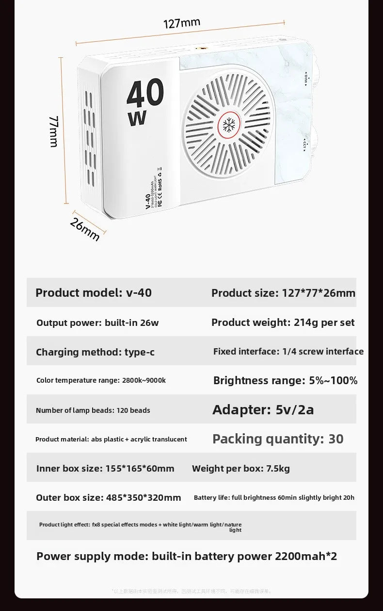 Portable LED video light - 40W - Mini Small Portable Fill Light