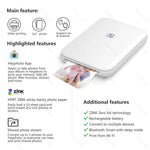 HPRT Portable Photo Printer Pocket Size Wireless Compatible with iOS&Android Phone, Zink Technology,Print 2x3 Sticky-Backed Photos, (with 5 Sheets Photo Papers)