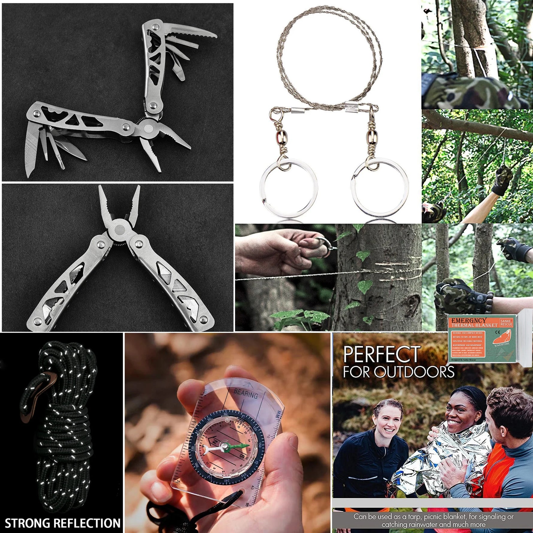 • [Must Have Survival Gear]: All of the items have been tested to ensure they can withstand even the toughest emergencies and conditions, such as outdoor adventure, hunting, camping, hiking, travel, natural disasters such as earthquake, tornado, flood. If you have any questions, please don’t hesitate to reach out to us so we can get you taken care of in 24hours.