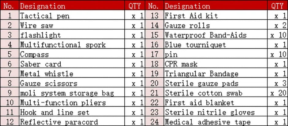 • [24 types 1 Survival Kit]: Having an emergency kit is an important step to prepare and protect your and household for some unforeseen events. This emergency survival kit is specifically designed and curated by 3 survival experts, includes total 24types multipurpose survival tools. It contains the most popular survival gear and tools, also a first aid kit that enough to treat a family or a group of friends under emergency circumstances.