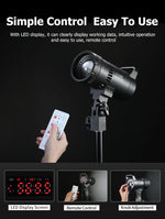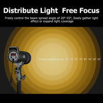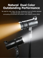 The dual control mode allows for convenient operation via either the built-in light body controls or a 433MHZ remote control, providing users with ultimate flexibility. The ABC channel grouping feature enables precise control over three different lighting setups, ideal for complex lighting scenarios.