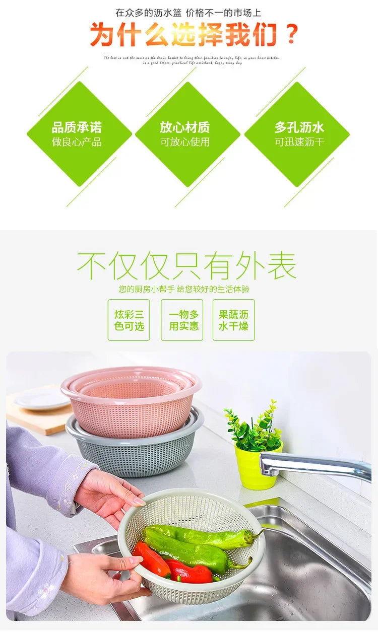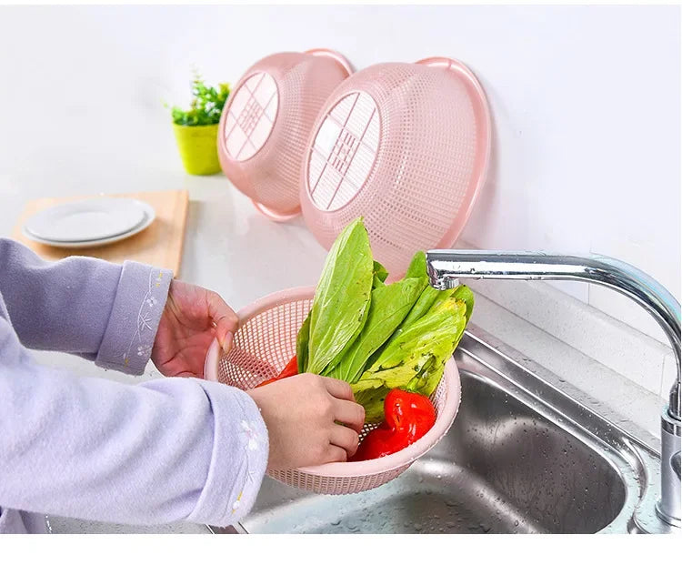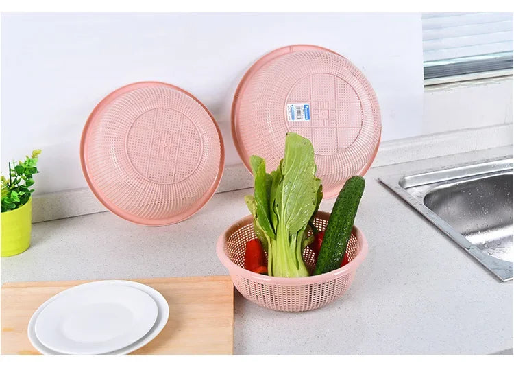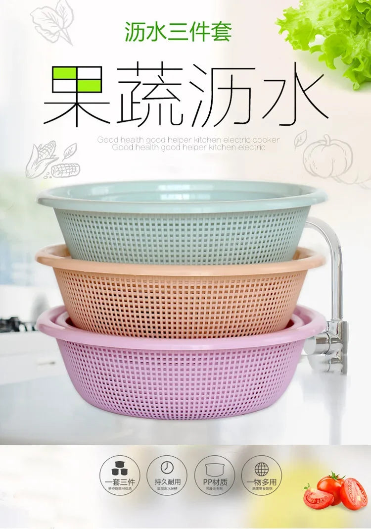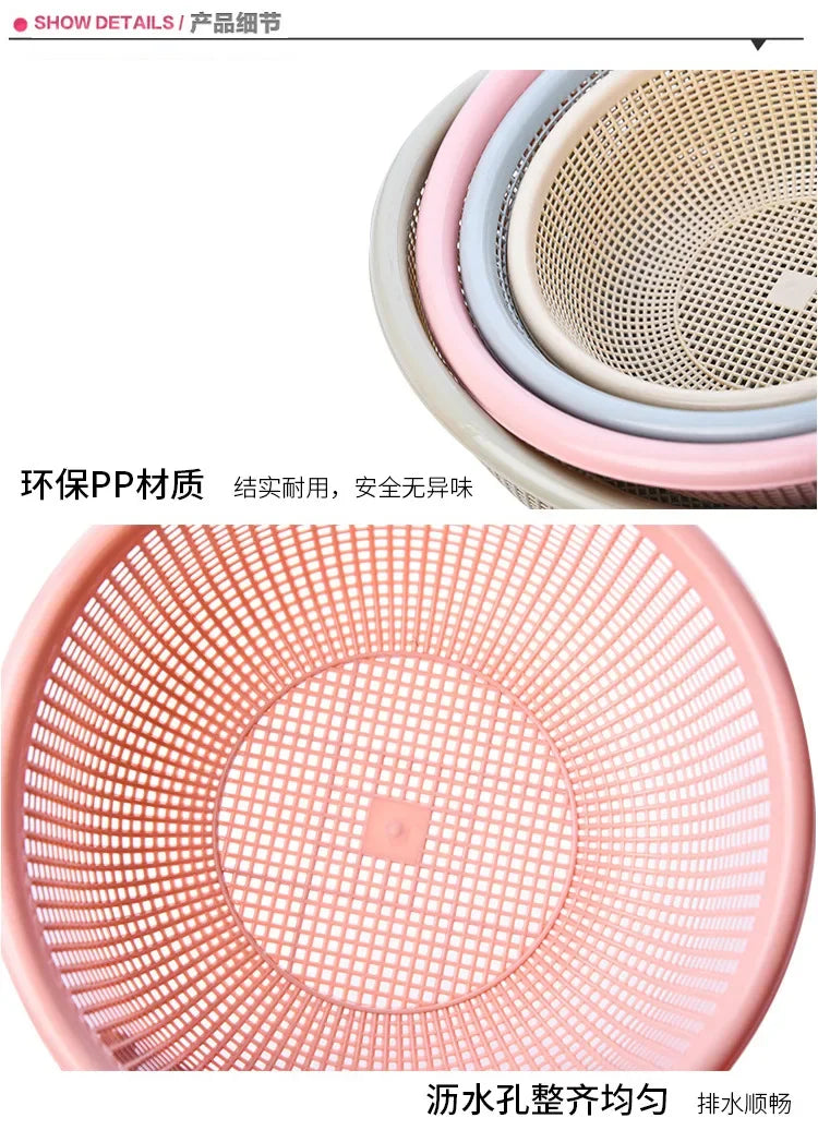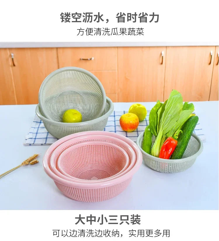 Round Shape Fruit Vegetable Noodles Washing Basket Drainer - 3Pcs