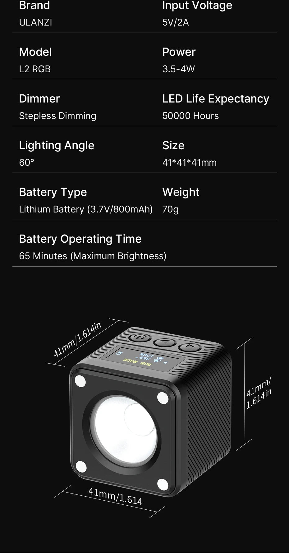 Battery Operating Time: 65 Minutes (Maximum Brightness)