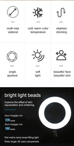 LED Selfie Ring Photography Video Light - 10" 26cm