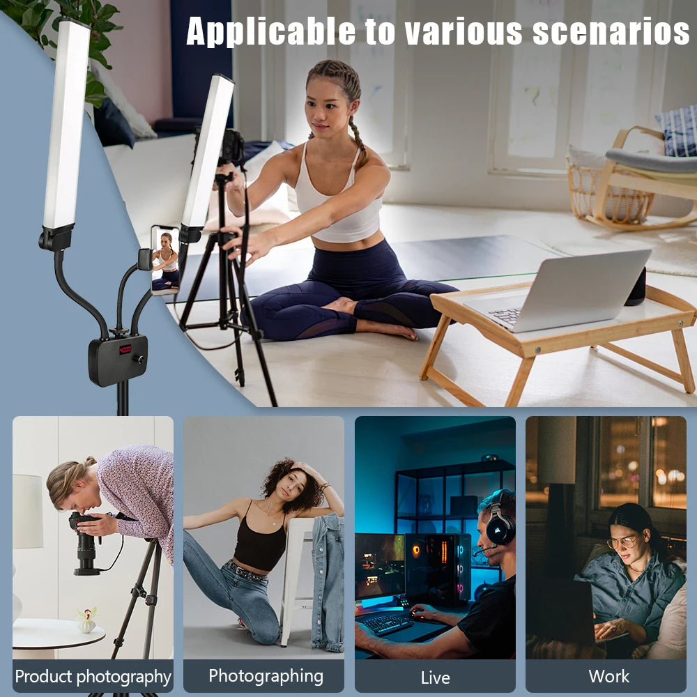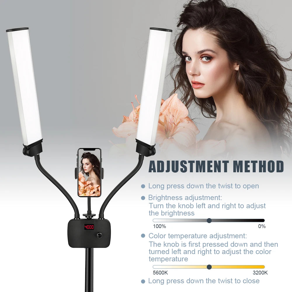 Fill Light with Stand: Double Arms Fill Selfie Ring Light,LED Fill Light with LCD Screen