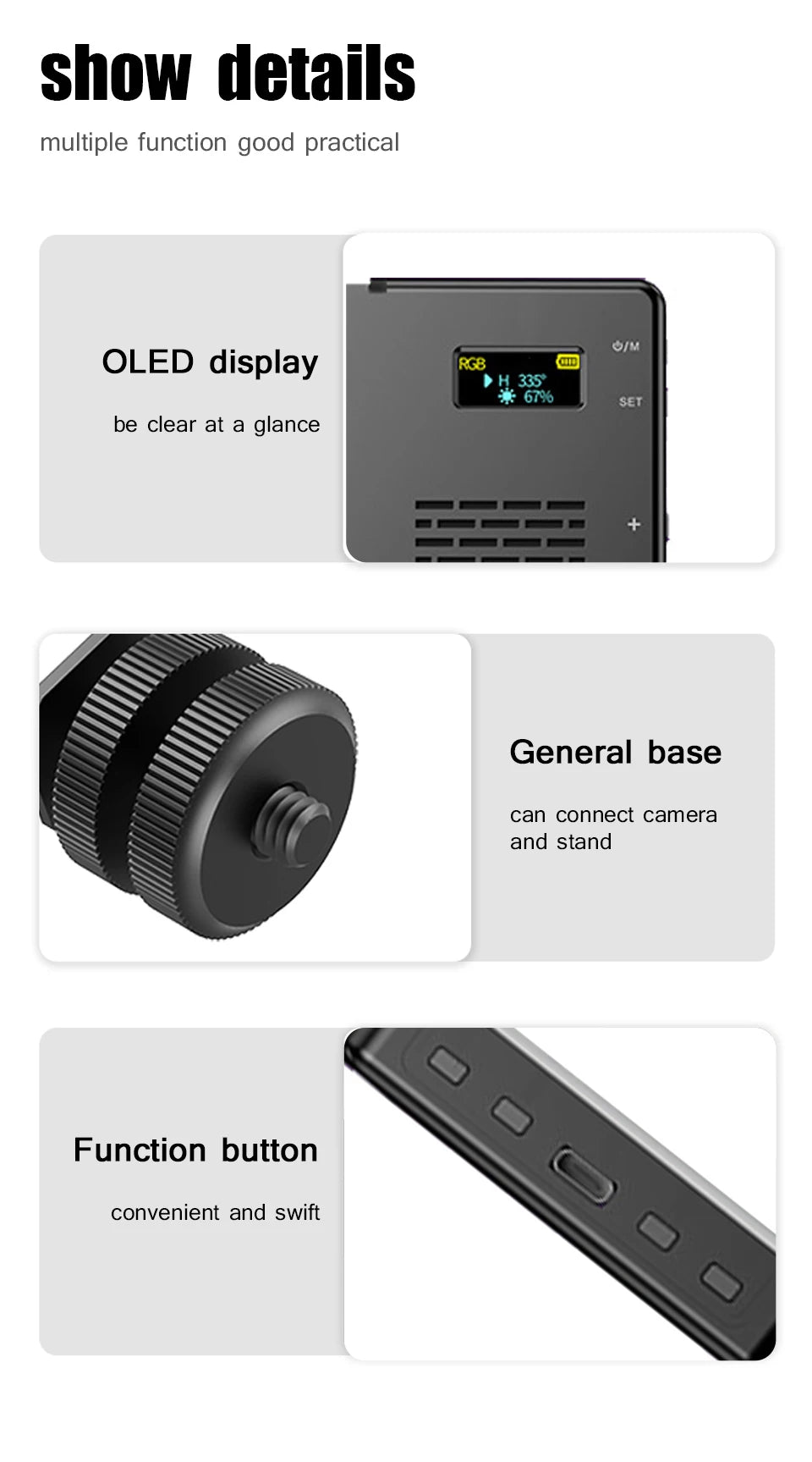 CRI95+ 2500-9000K LCD Display Cold Shoe For Vlog & Live Streaming
