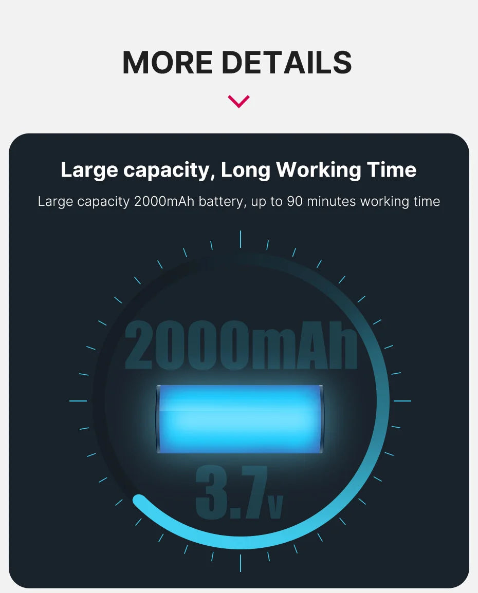 With 2000mAh rechargeable battery built in, the RGB light wand can be used continuously for nearly 2 hours at maximum power and 15 hours at minimum. Equipped with Type C charing port on back of light tube, simply charge with the USB cable (Package Included) and 2.5 hours for a full charge. It can be used while charging, don't worry about the problem of insufficient battery.