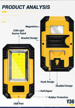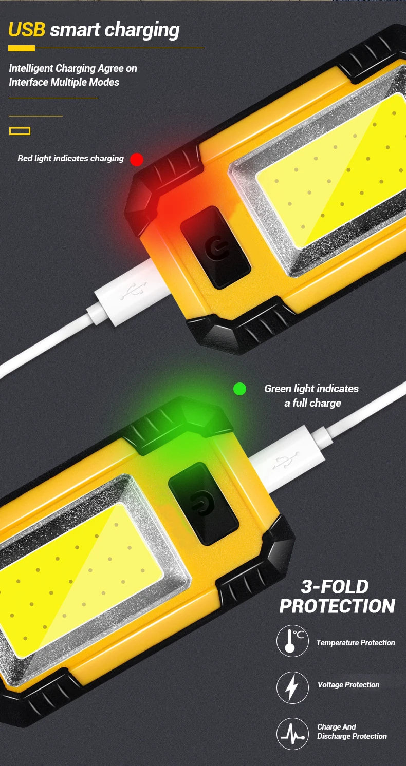 Portable Working Light - COB High Bright Flashlight - 3 Modes