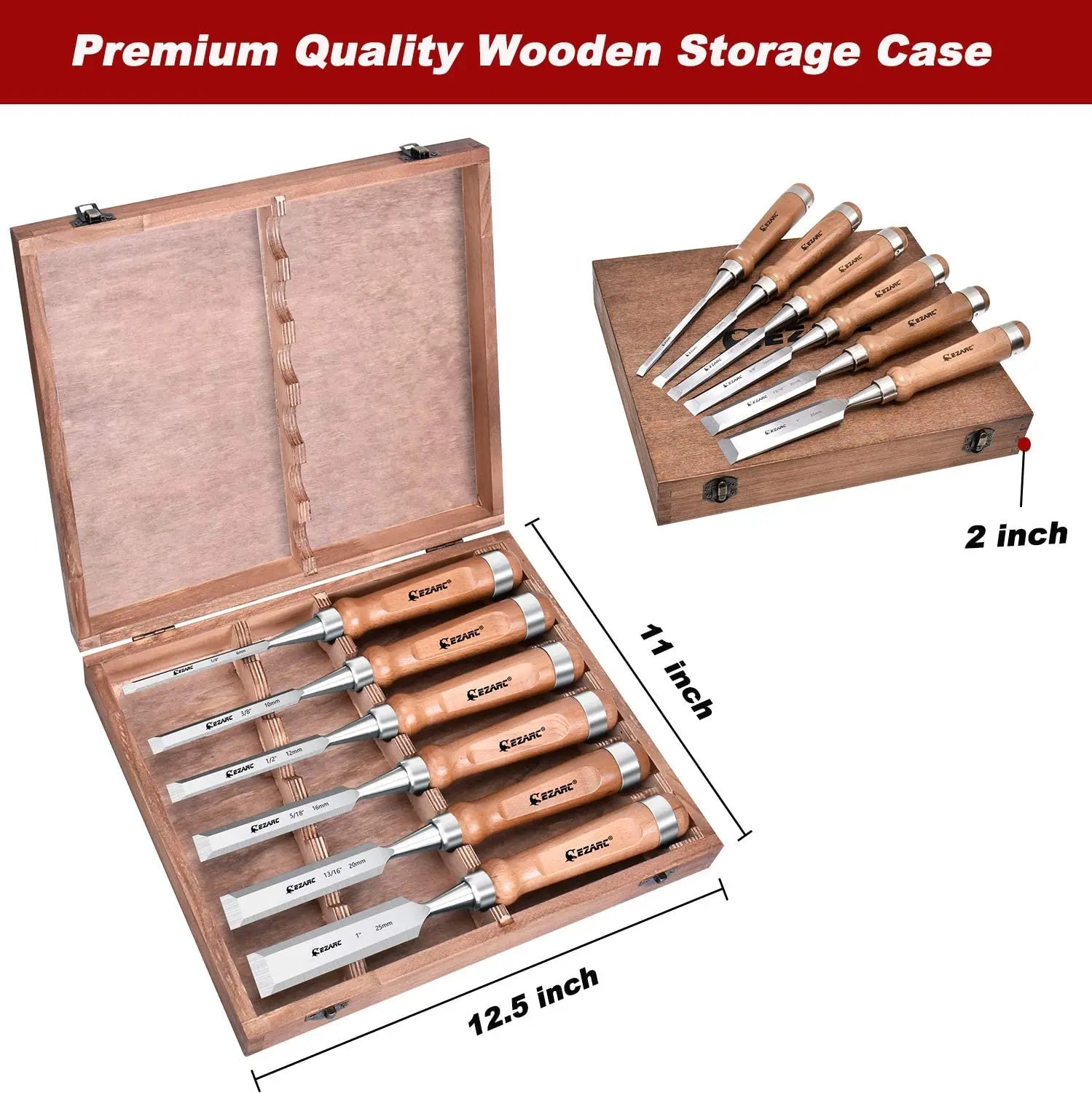 EZARC Wood Chisel Tool Sets - Woodworking Carving Chisel Kit - 6Pcs