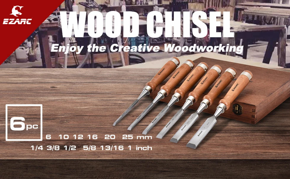 The wood chisel is an indispensable member of your tool set, a sharp wood chisel can cut mortises, shave rough surfaces, chop out corners and scrape off glue with ease. Sharpness is essential with wood chisels, EZARC 6pc woodworking chisel set is exactly designed for your woodworking demands.