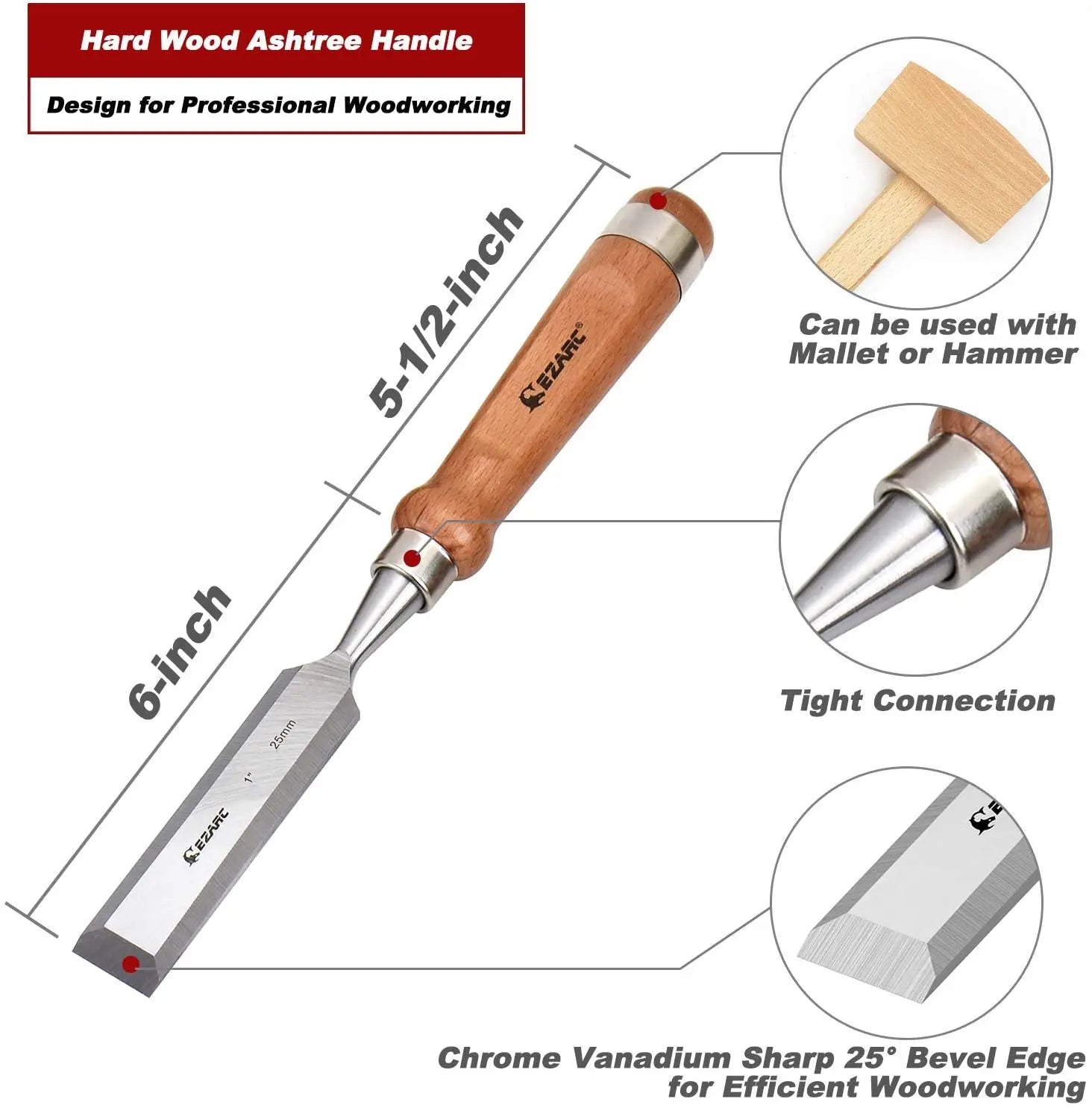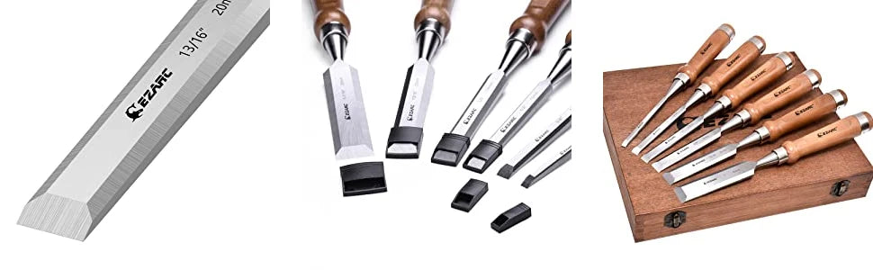➤ Professional Design: EZARC wood chisels are positioning professional users for any challenging woodworking projects. 6 piece sturdy, well-made carving blades include 1/4”(6mm), 3/8”(10mm), 1/2”(12mm), 5/8”(16mm), 13/16”(20mm), and 1”( 25mm) with 12-month quality guarantee.