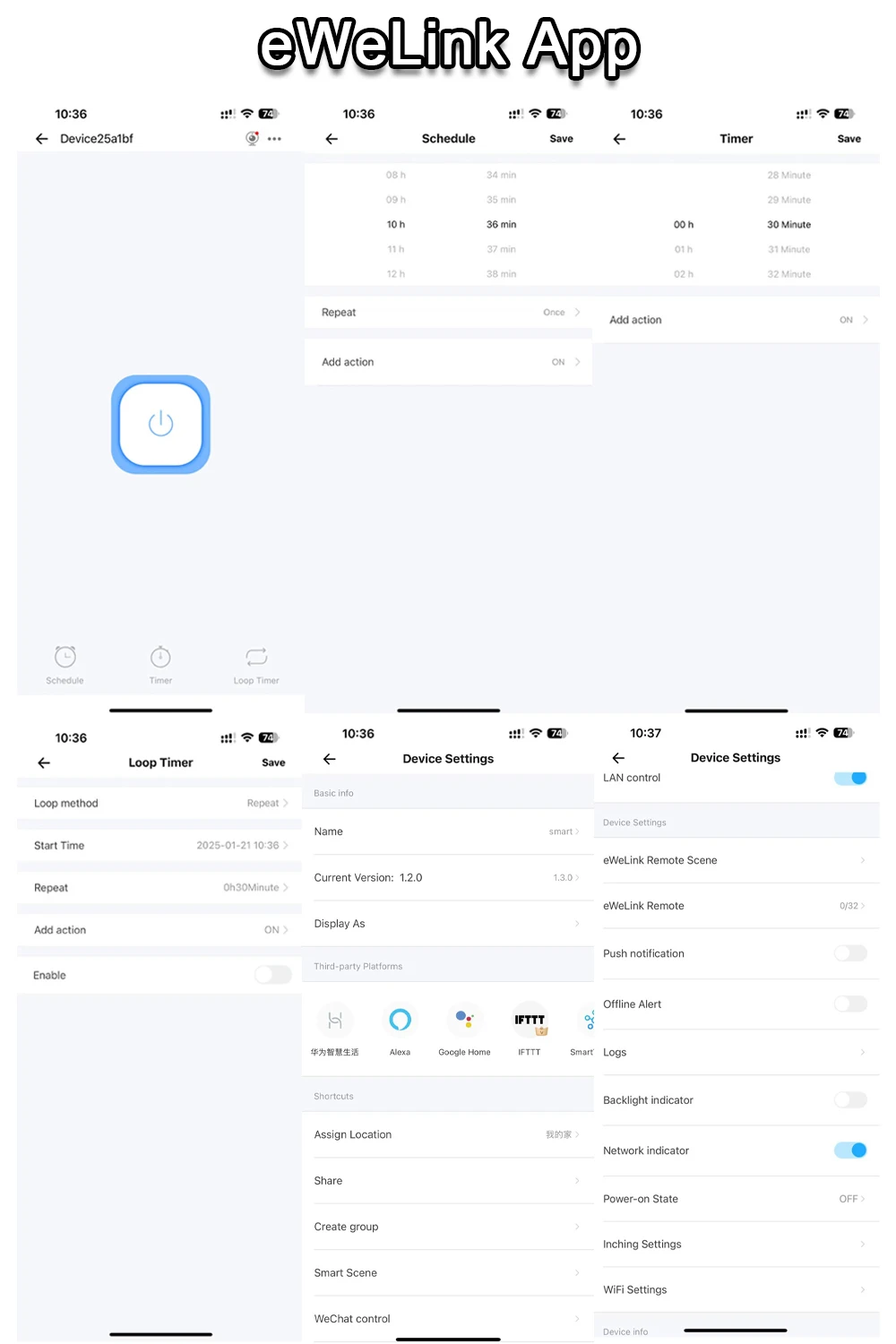 4.Uses popular"Tuya/Smart Life/eWeLink" App,android / ios Allows for full control of your lights or compatible appliances. multiple program options allow you to plan the exact time to turn lights / fans / etc. On/Off automatically.