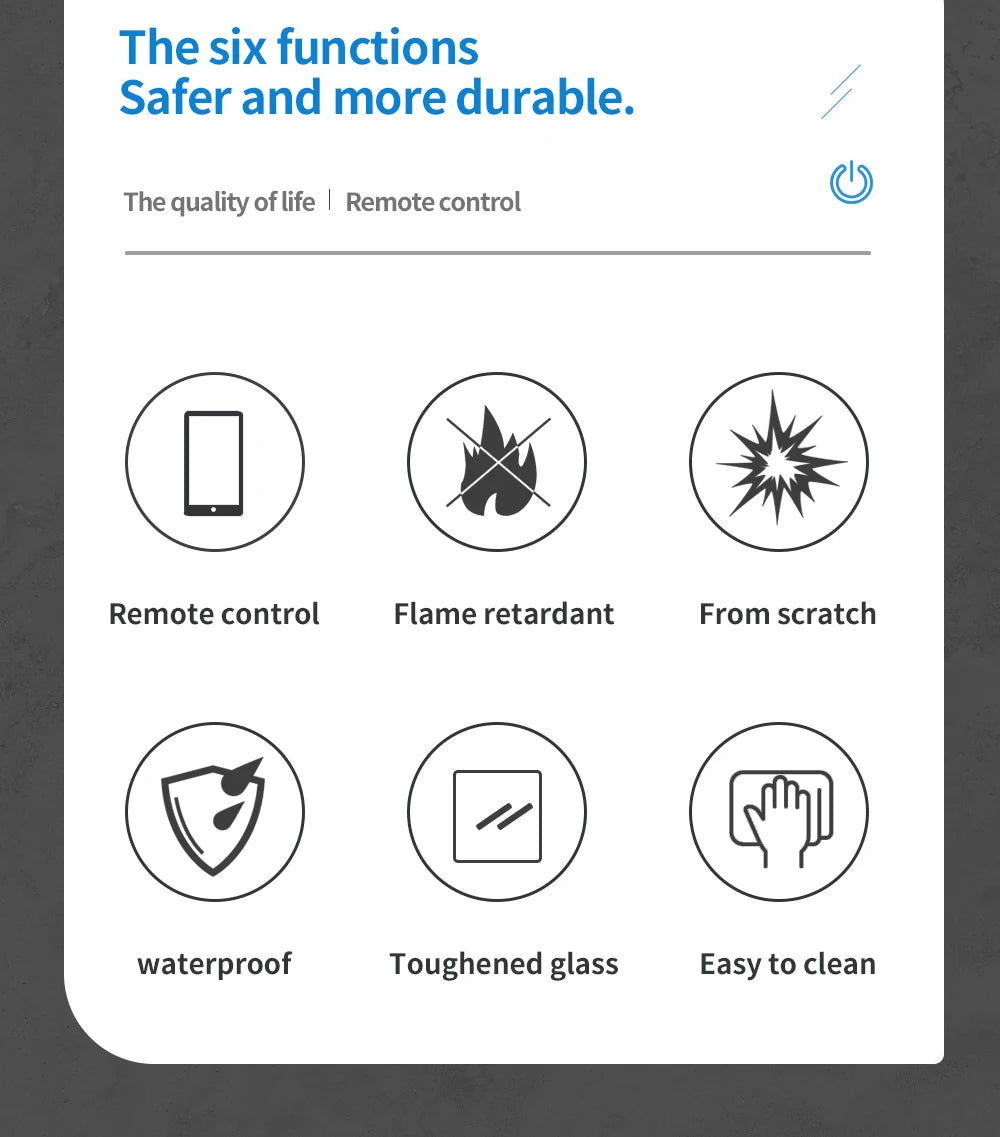 7.Safety and Certification:The wall switch adopts premium materials, such as fire-resistant shell, phosphor bronze connects and advanced PC+TEMPERED GLASS, can provide fire prevention, overload protection to protect your family.
