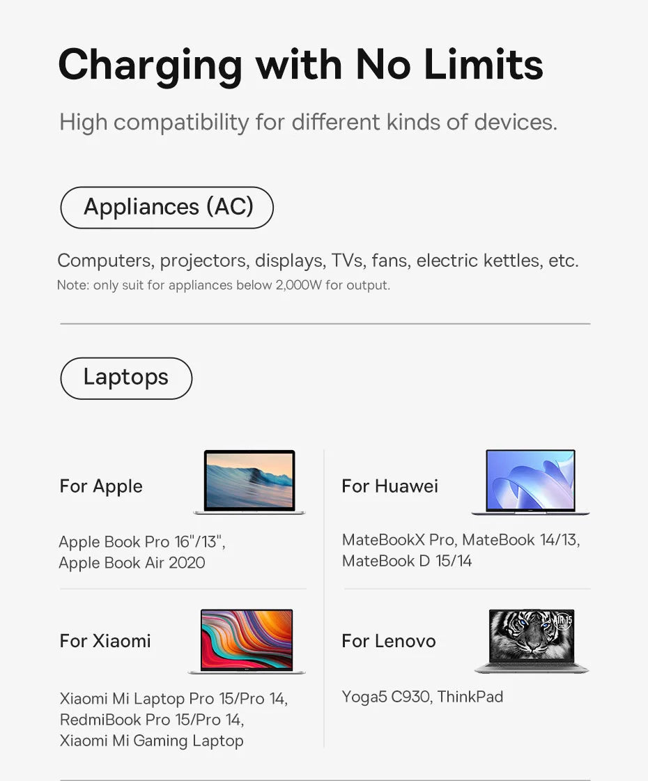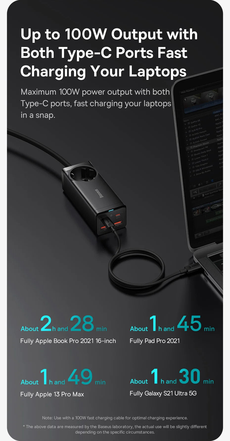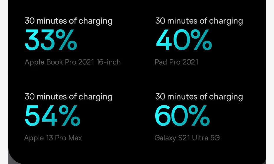 Up to 100W Output with Both Type-C Ports Fast Charging Your Laptops.