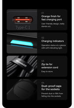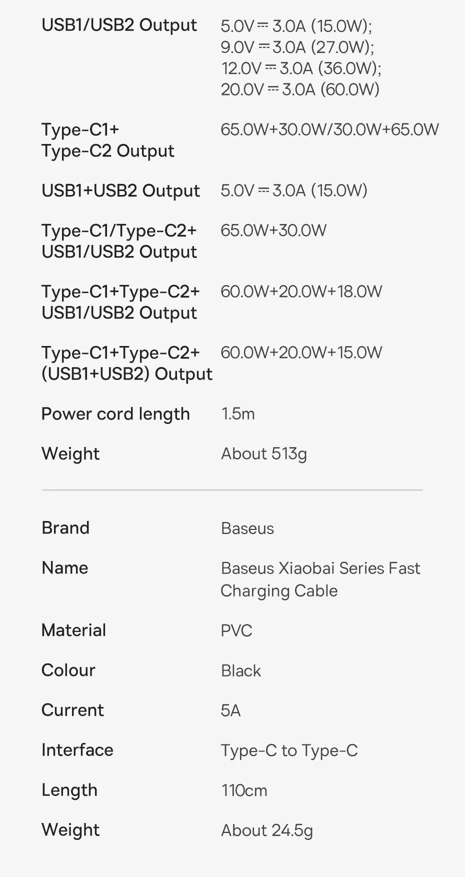Type-C1 +Type-C2+ (USB1+USB2) Output: 60W+20W+15W