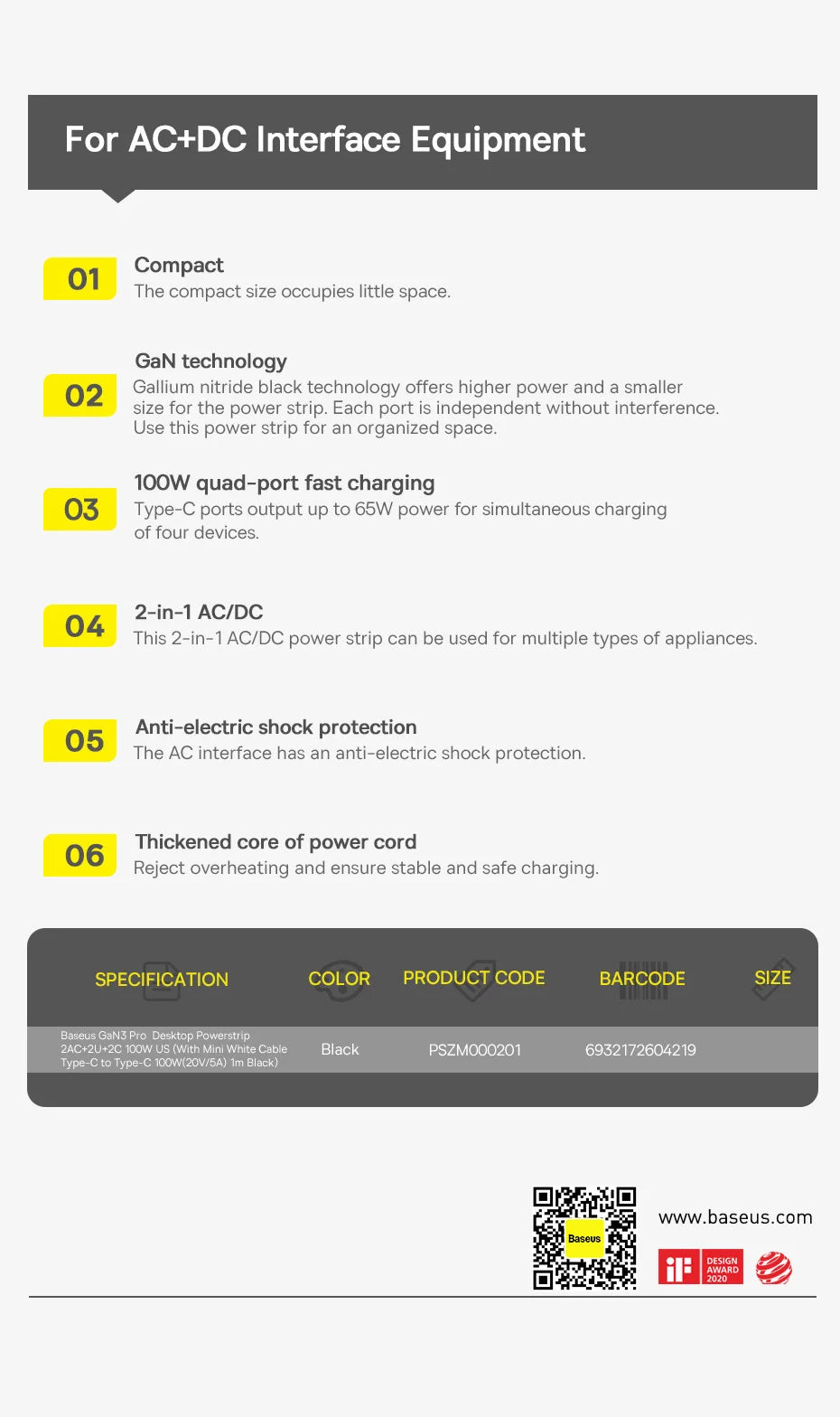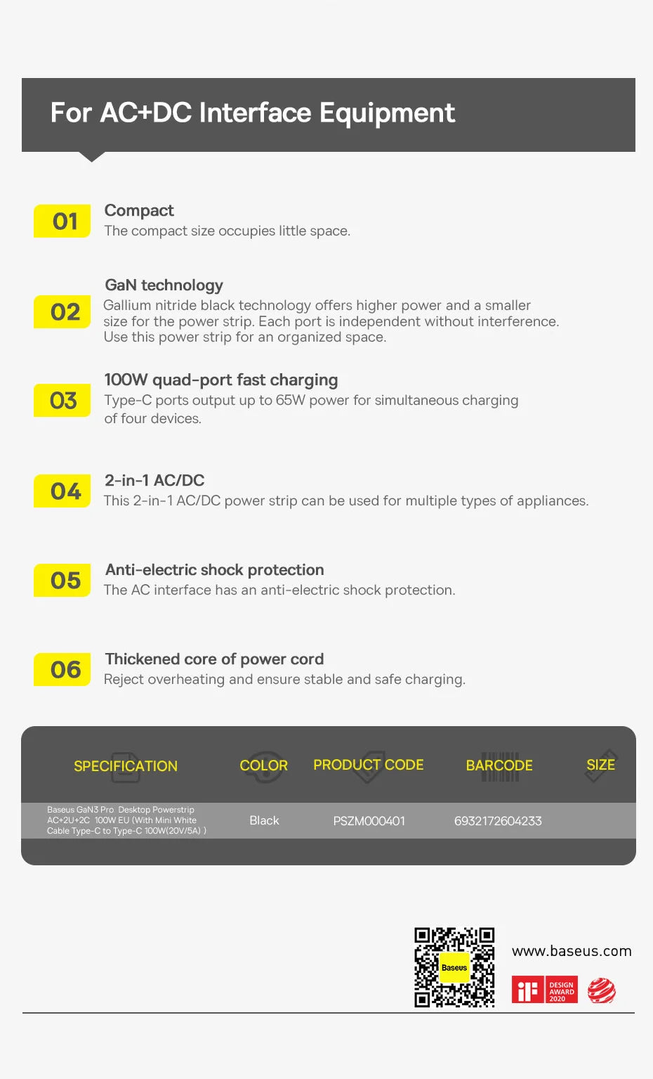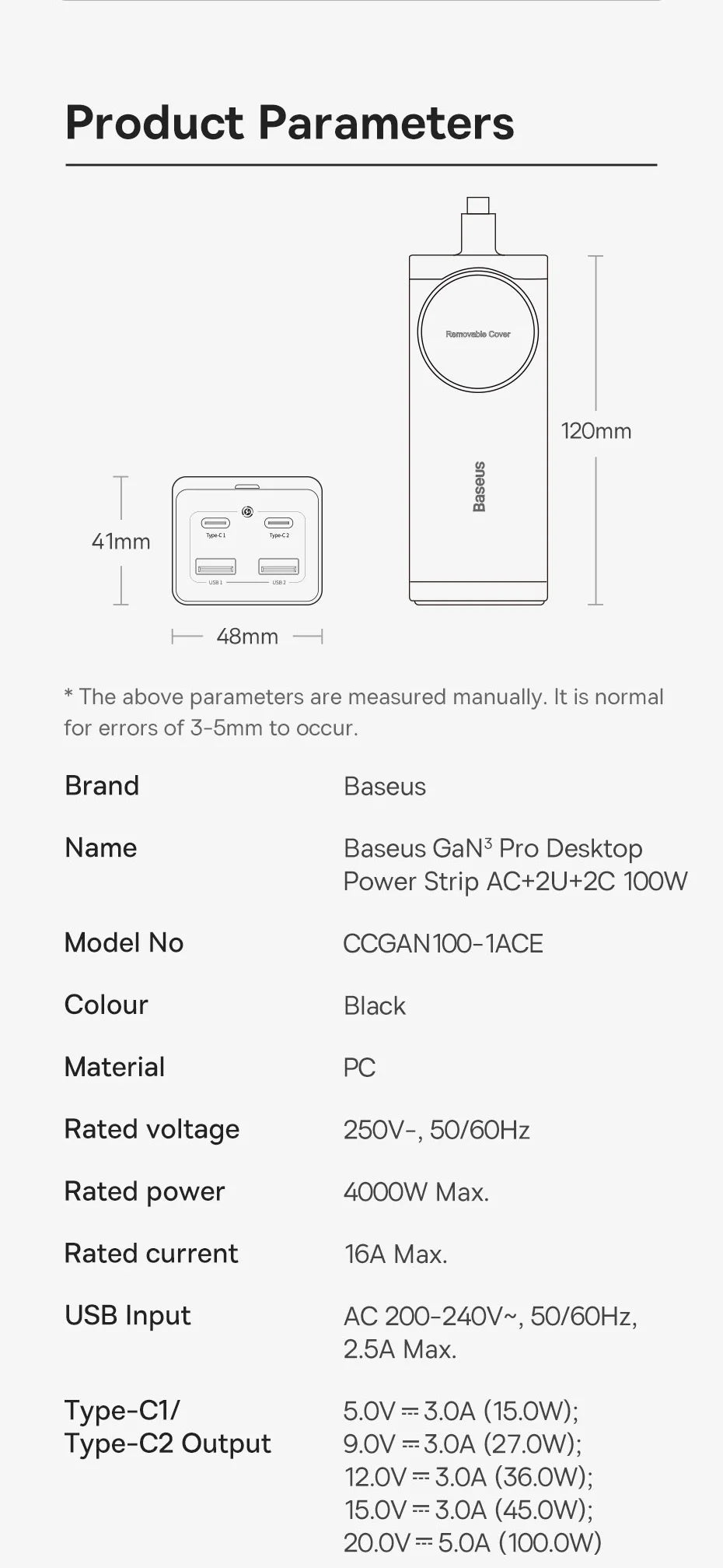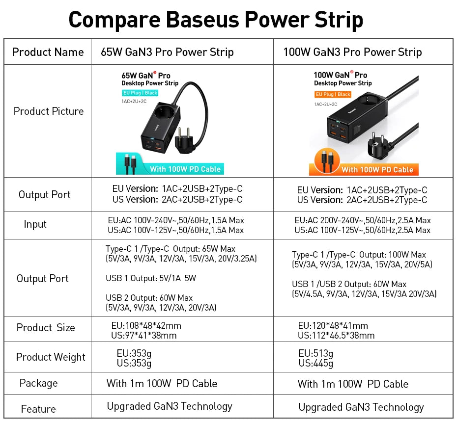 Product: Baseus GaN3 Pro Desktop Power Strip 100W /65W