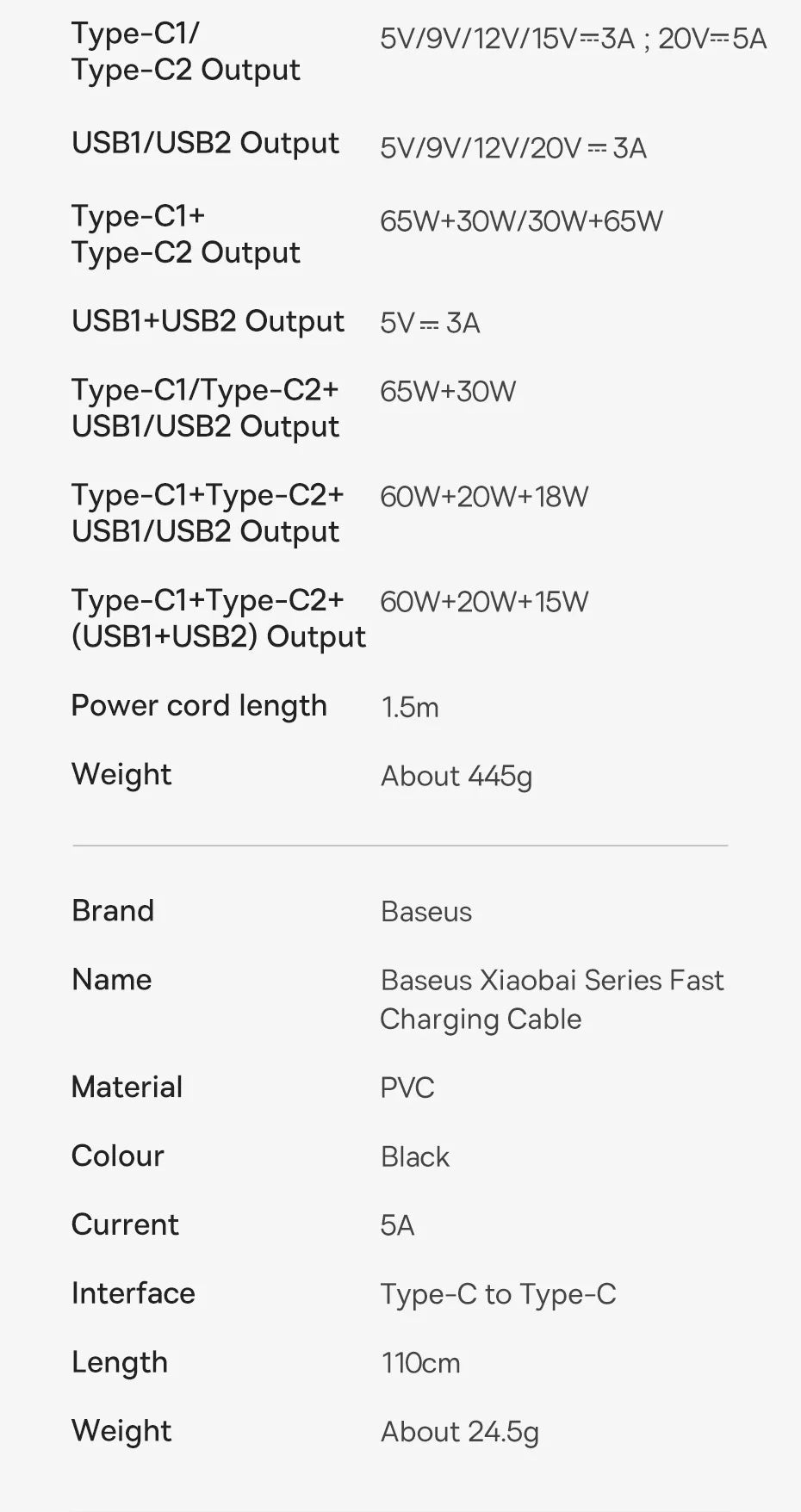 Type-C1+ Type-C2 Output: 65W+30W/30W+65W