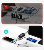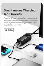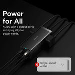 AC/DC with 5 output ports, satisfying all your power needs, the perfect solution to lacking output ports and messy chunky chargers.