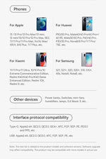 Applied Fast Charge Protocols: Samsung Adaptive Fast Charge,Huawei FCP,USB PD,other,Qualcomm Quick Charge,Huawei Quick Charge