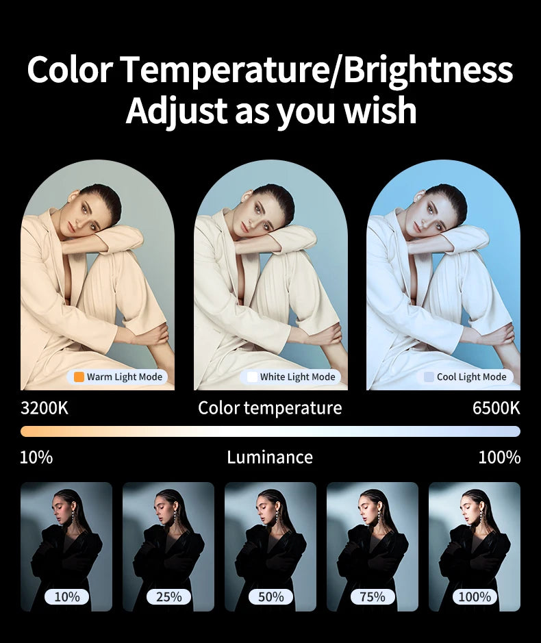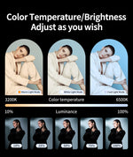 2. 3 Light Modes & 10 Brightness Levels: The selfie light has 3 Light Modes(Bright White, Bright White + Warm Yellow, Warm Yellow), which provided to meet your various usage needs, allowing you to be charming in any situation, such as makeup lighting, selfies, video recording, video conference, vlog show, live streaming. Built in 60 LED lighting beads to solve the problem of light, improve the quality of night photography. Enjoy your selfies no matter it is indoor or outdoor, daytime or at night.