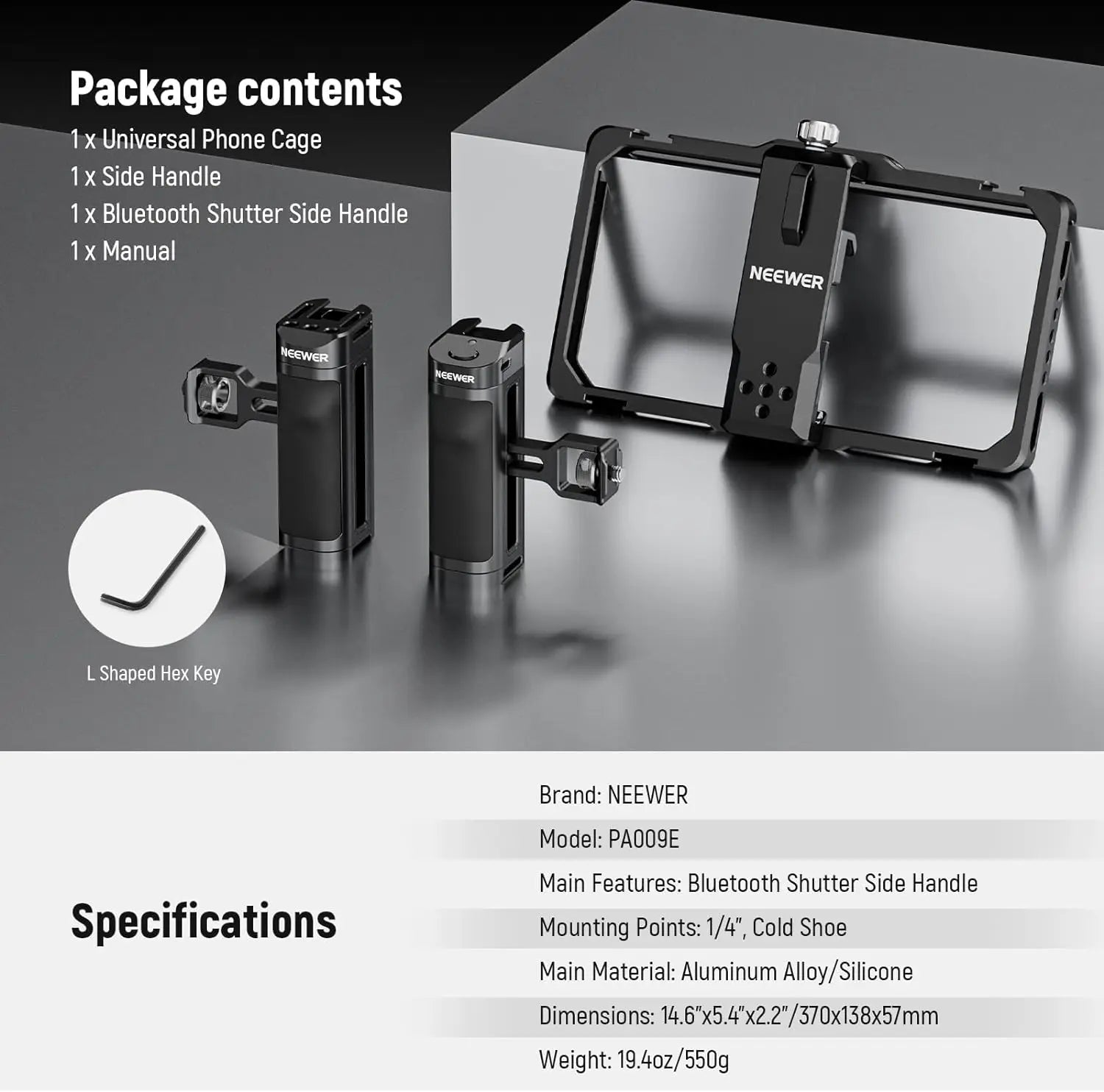 NEEWER Universal Phone Cage Rig with Bluetooth Side Handle