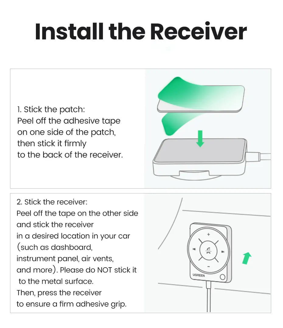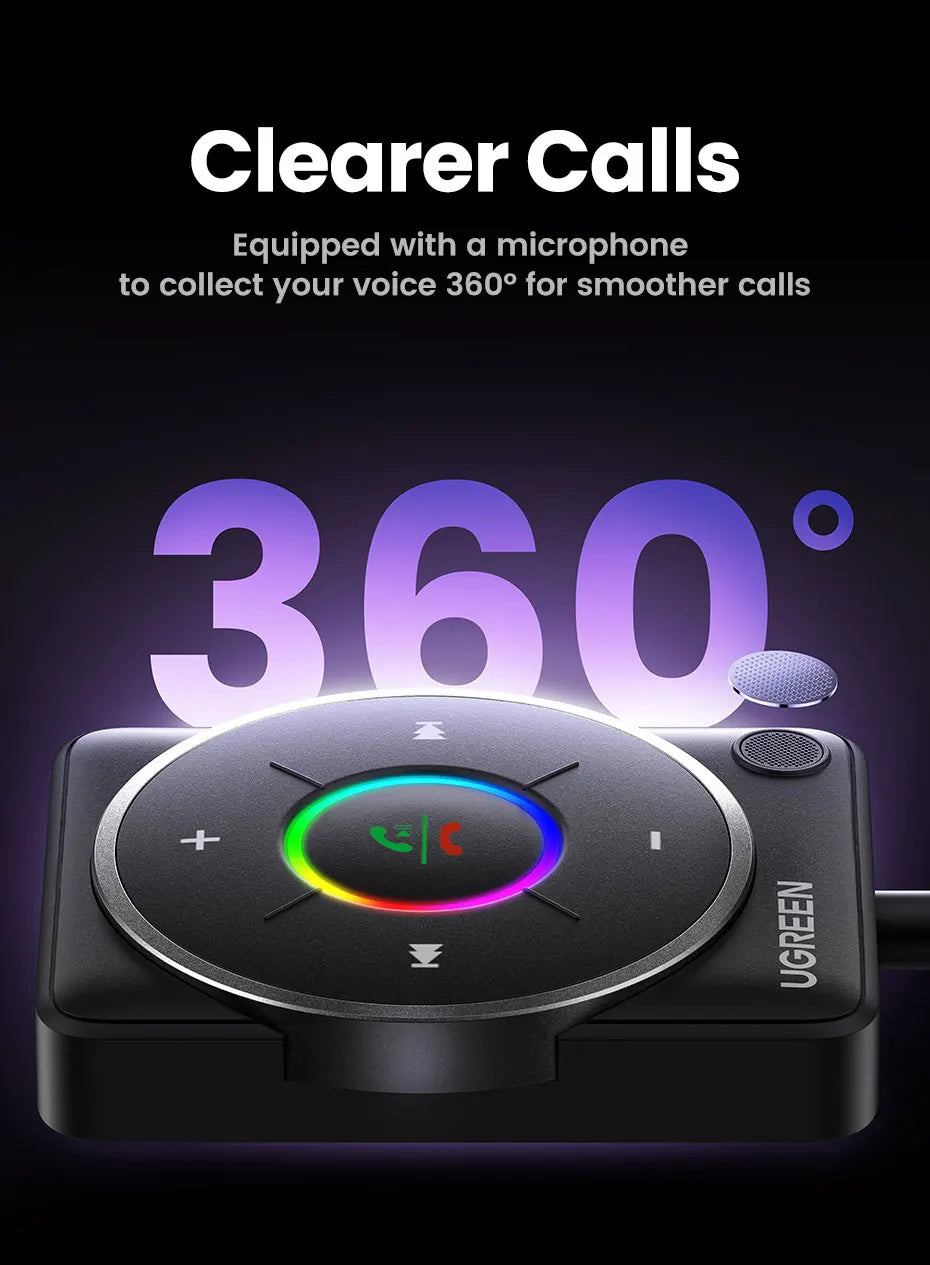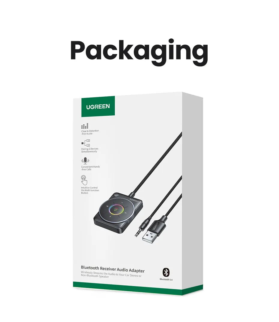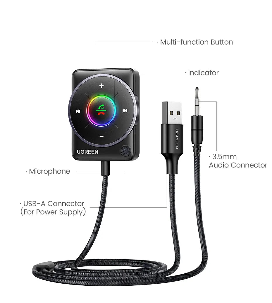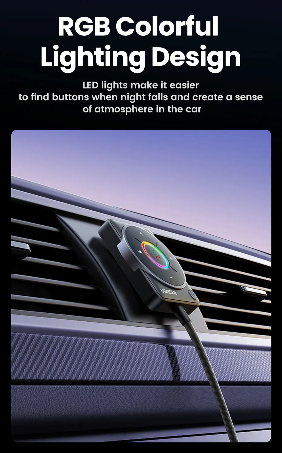 UGREEN USB Bluetooth 5.4 Car Receiver Adapter with Mics and Noise Cancellation