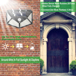 6.【Waterproof IP65 and Heatproof】The 100 led Solar Motion Sensor Light is great for wall, patio, garden, porch, lawn, pathway, Driveway , gutter, etc.. It's specifically designed to withstand extreme weather conditions.