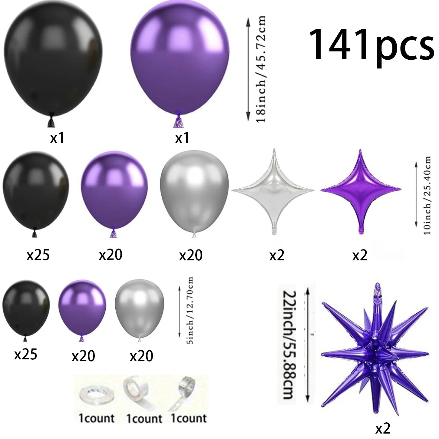 141pcs Black Purple Silver Balloon Garland for Birthday Parties,anniversaries, Bachelorette Parties, Carnivals, Home Decorations