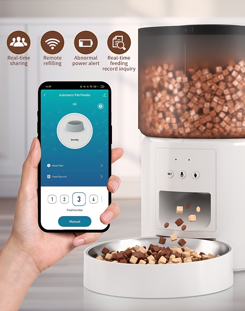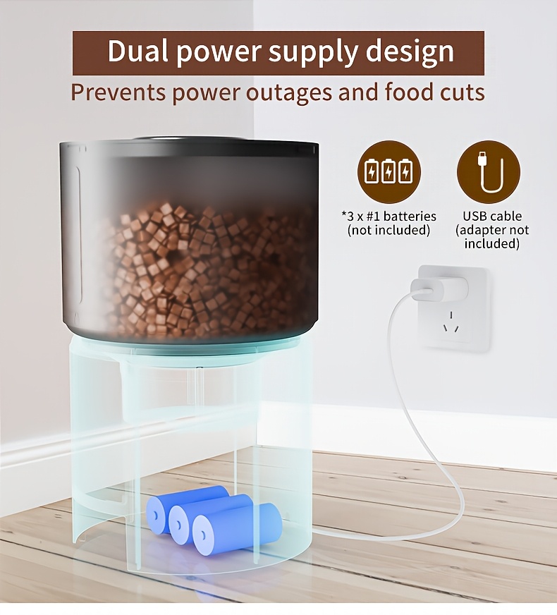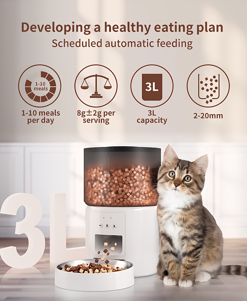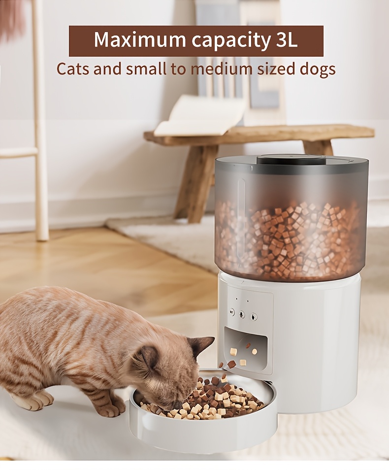 1pc Smart WiFi Pet Feeder for Cats and Dogs - App-Controlled Automatic Food Dispenser, Timed Feeding Device, Battery/USB Powered, 3L Capacity, 1-4 Meals/Day, 1-9 Portions/Meal, No Battery Included