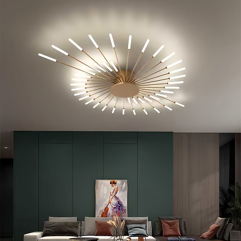 28-head, 42-head Luxury Warm Light LED Ceiling Lamp - Modern Indoor Lighting for Living Room, Dining Room, Bedroom - Fireworks Pattern, Energy Saving, Simple and Modern Style, Easy Installation