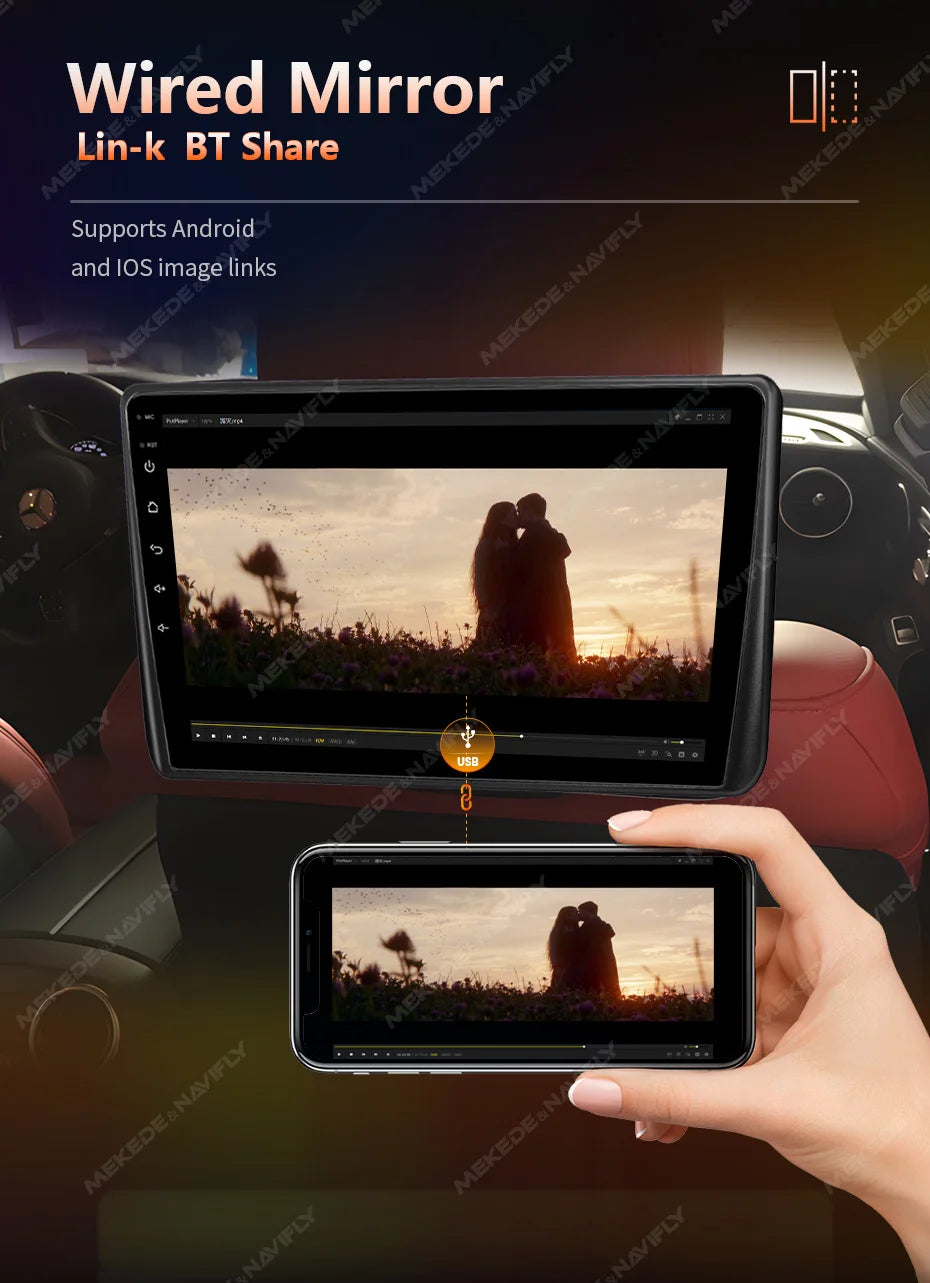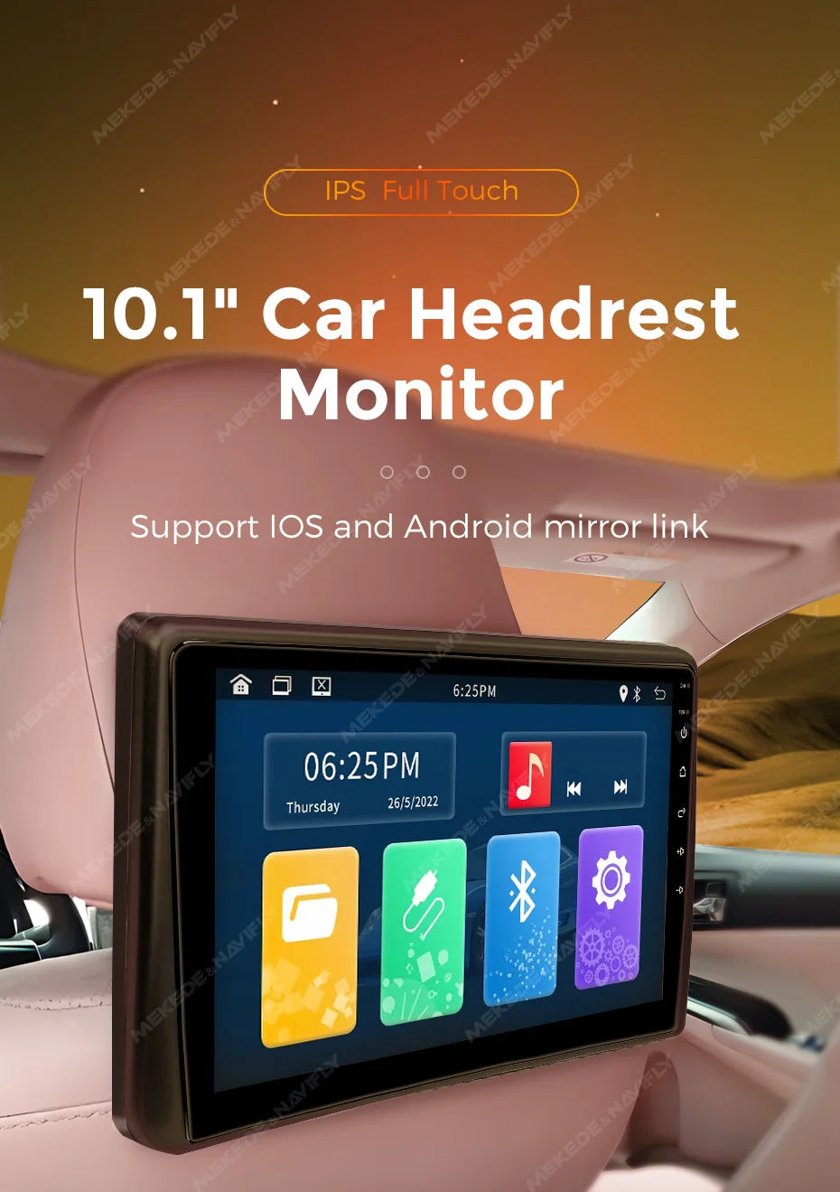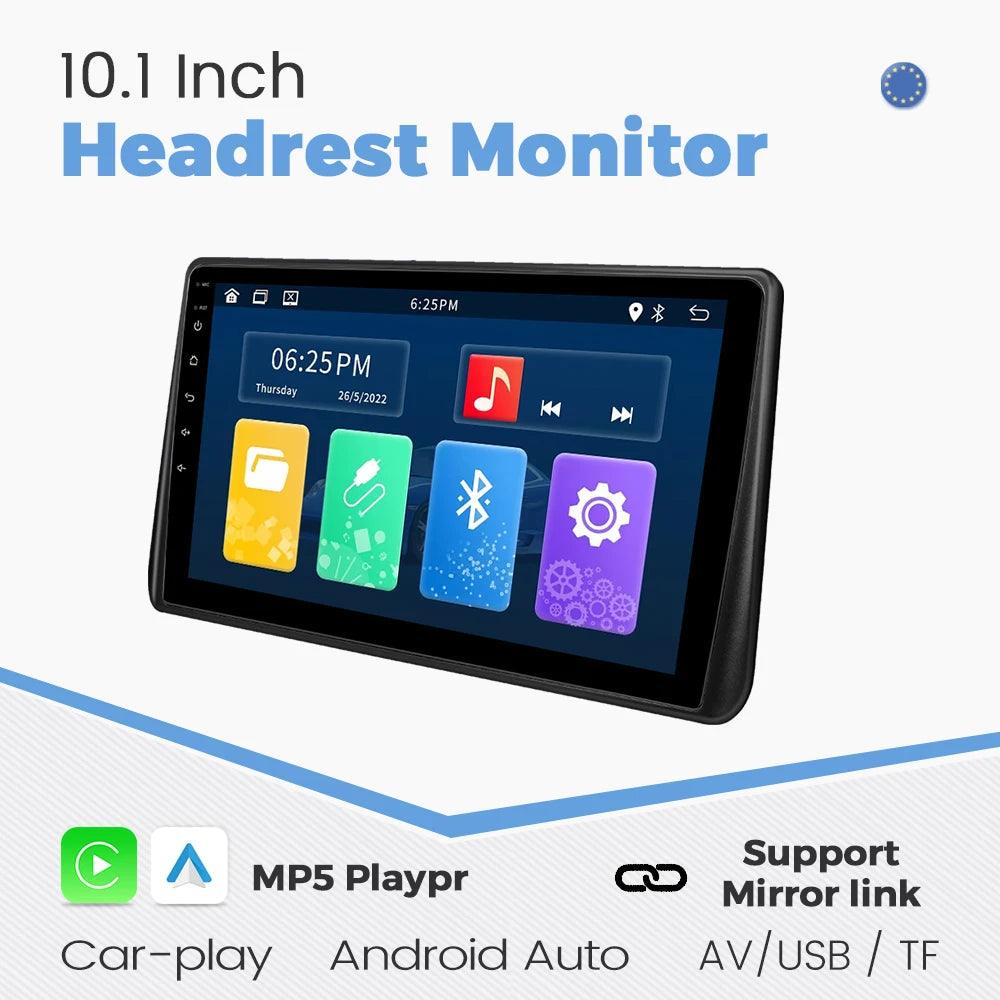 10.1" Car Headrest with Monitor IPS 1280*720 Display Support Carplay Android auto Mirror Lin-k AV IN Out TF Headrest Car Player