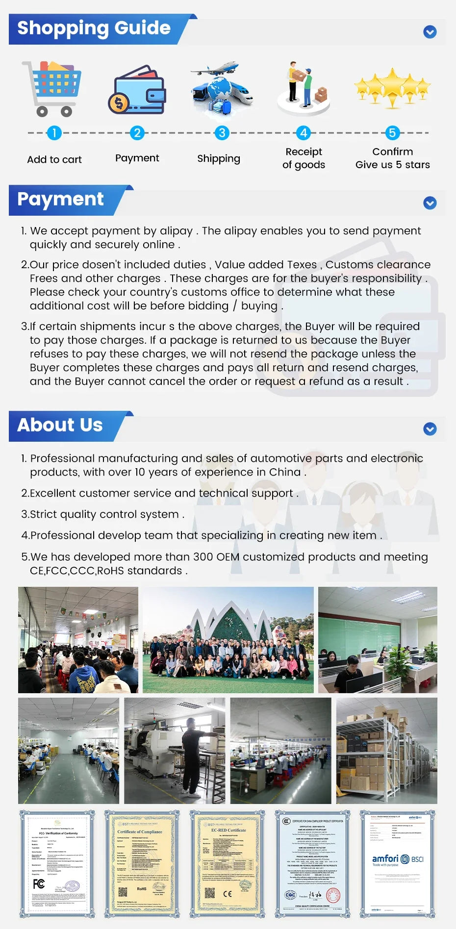 4.Our products have a 1-year warranty period. If we have new software, we will update it at any time to bring you a better experience. If you give 5-star praise, and share the installation photos on AliExpress, after feedback to us Warranty can be extended to 2 years