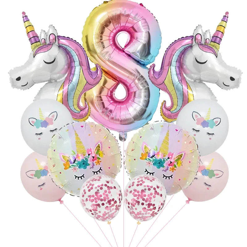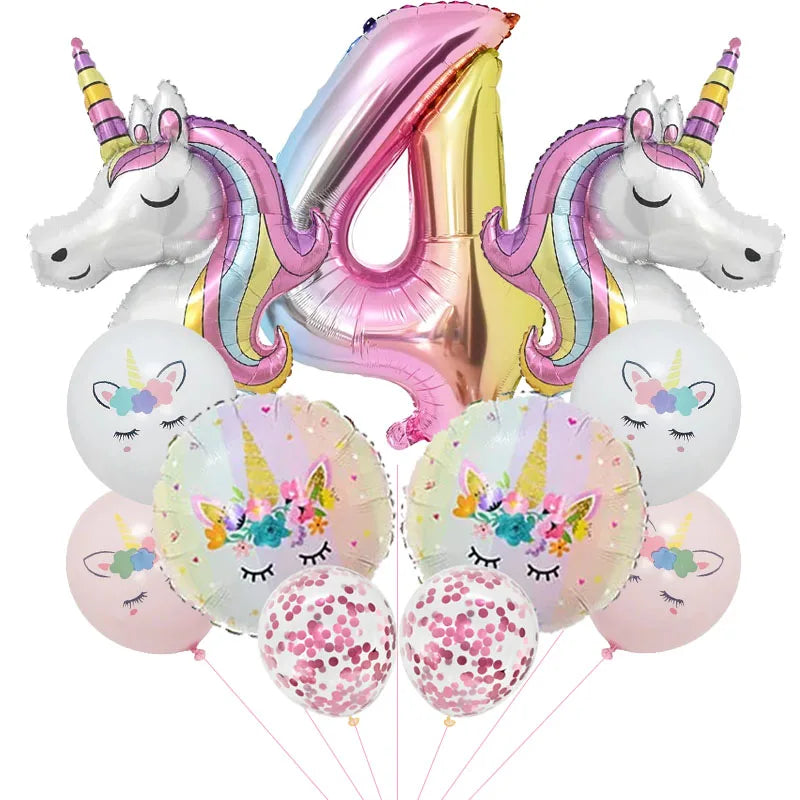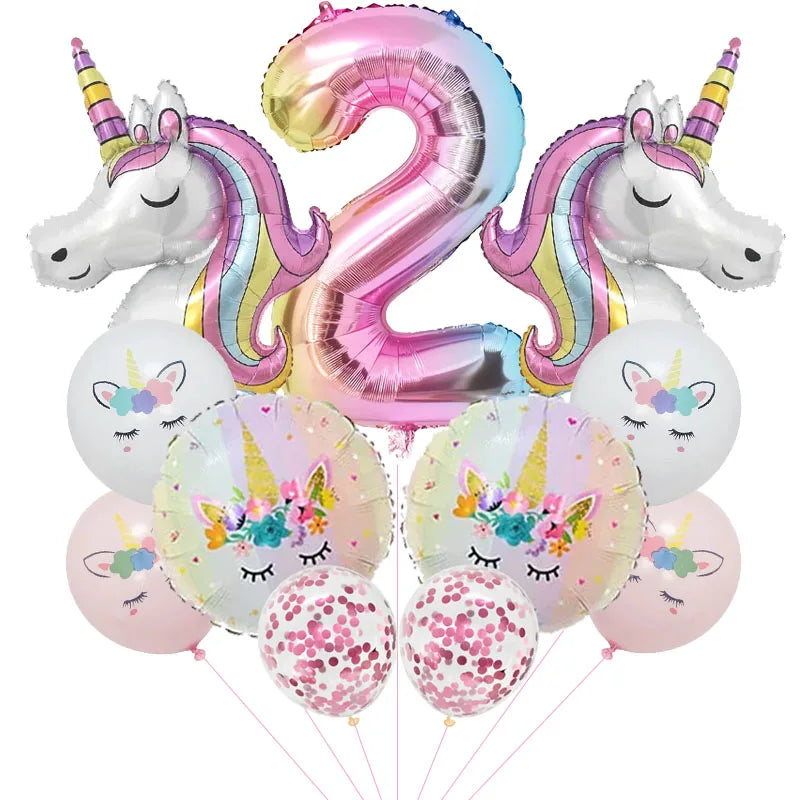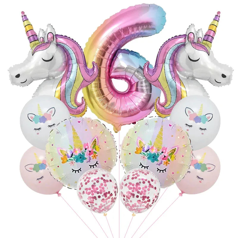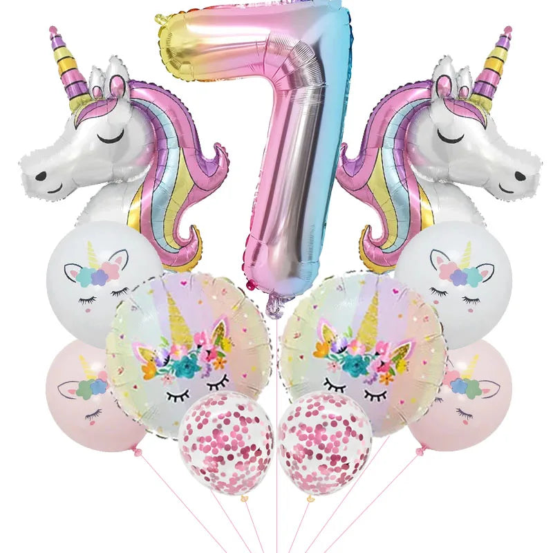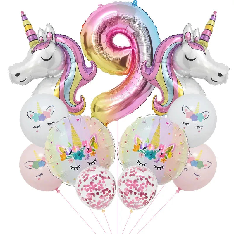 Rainbow Unicorn 32 inch Number Foil Balloons - 11pcs