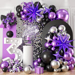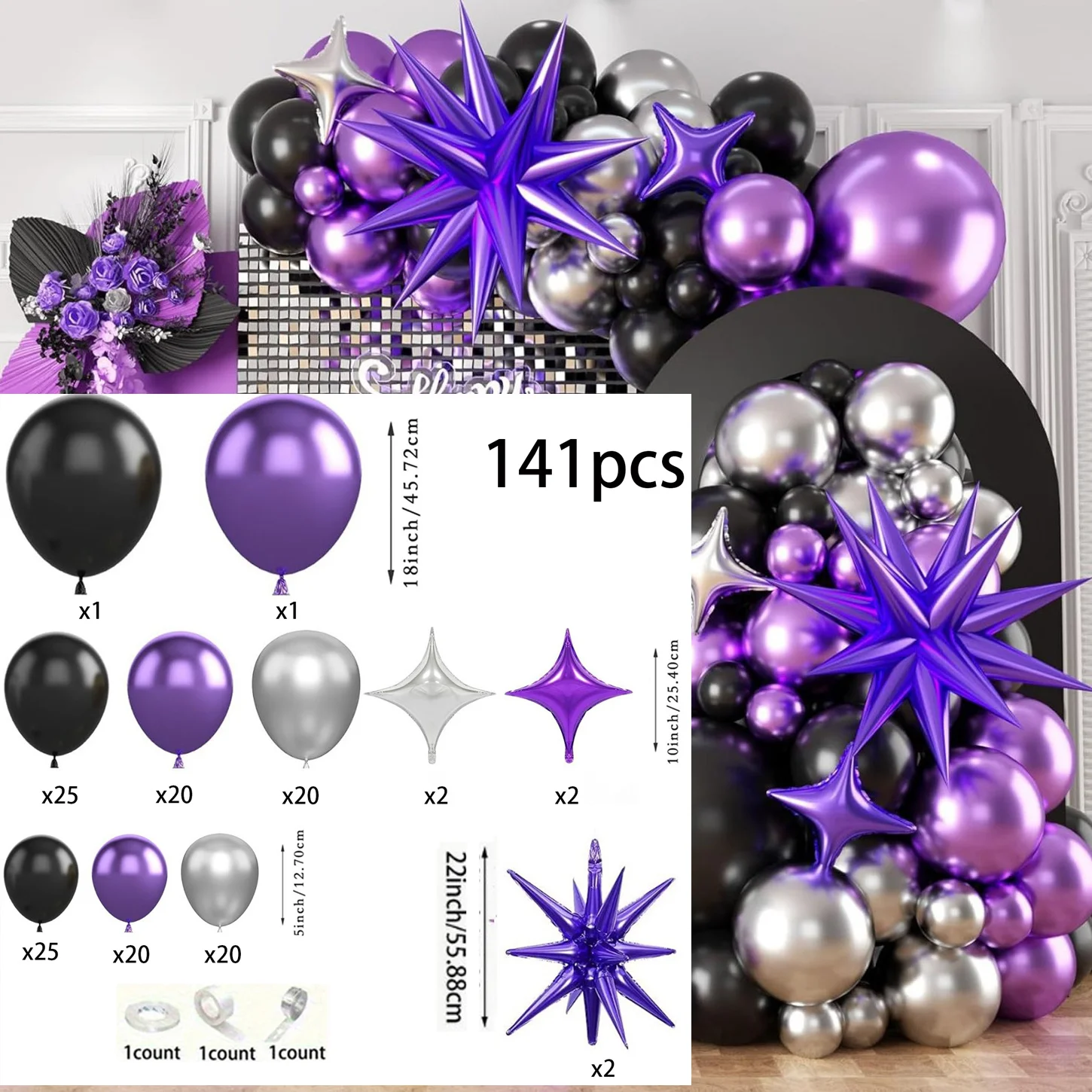 141pcs Black Purple Silver Balloon Garland for Birthday Parties,anniversaries, Bachelorette Parties, Carnivals, Home Decorations