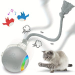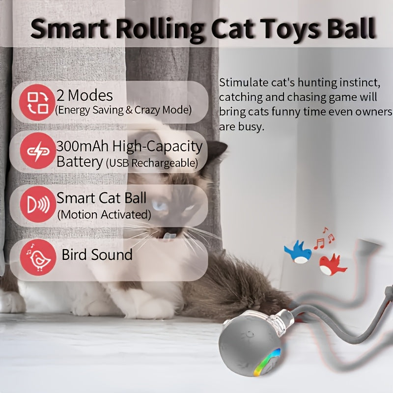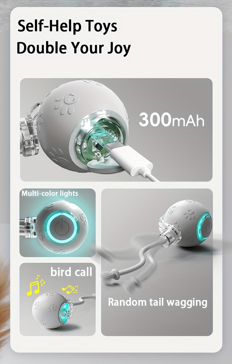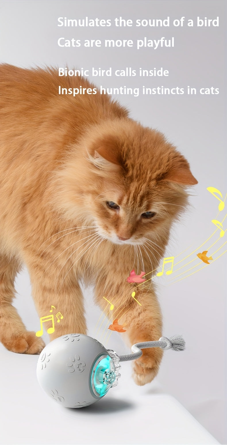 [1pc Interactive Cat Ball Toy] 1pc Interactive Automatic Cat Ball Toy with Tail & Bird Call Sounds, USB Rechargeable, Plastic, Suitable for Chinchillas, Hamsters, and House Cats - Random Rolling Pet Entertainment