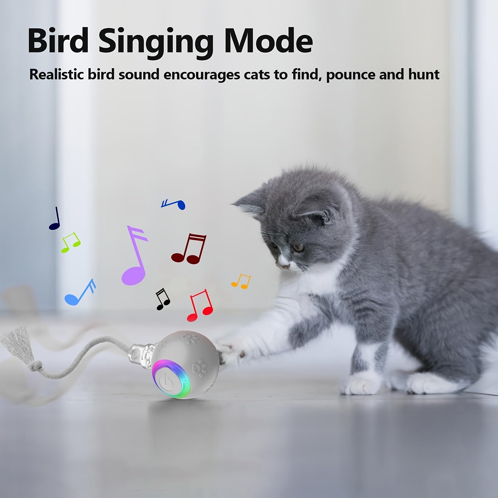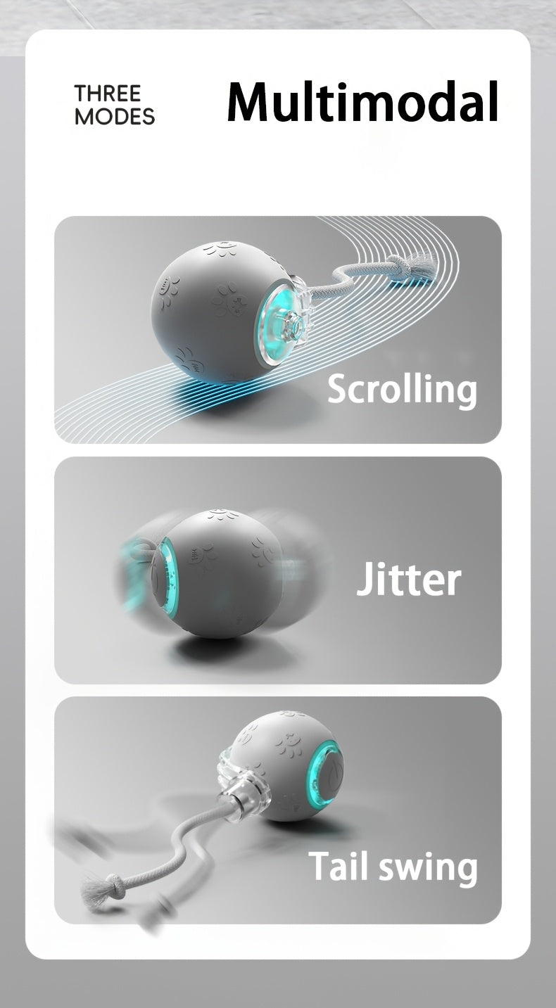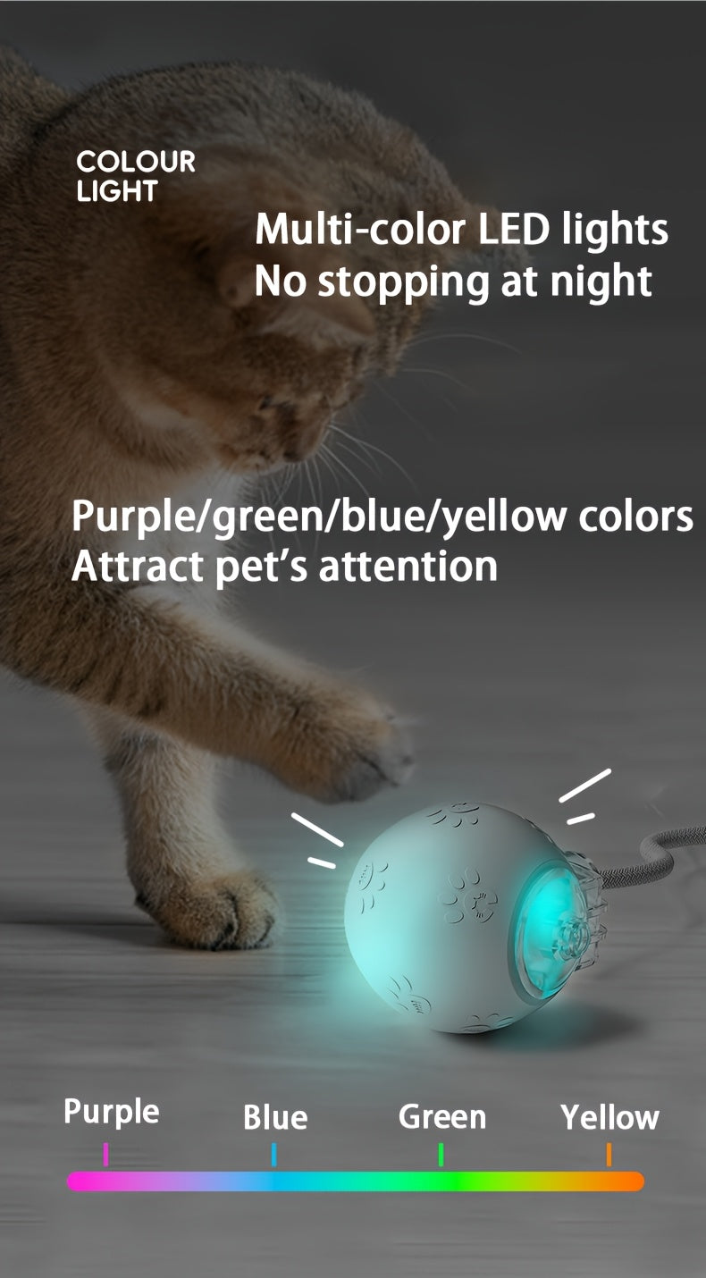[1pc Interactive Cat Ball Toy] 1pc Interactive Automatic Cat Ball Toy with Tail & Bird Call Sounds, USB Rechargeable, Plastic, Suitable for Chinchillas, Hamsters, and House Cats - Random Rolling Pet Entertainment