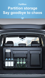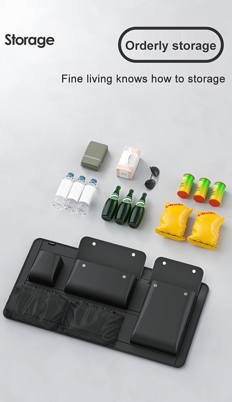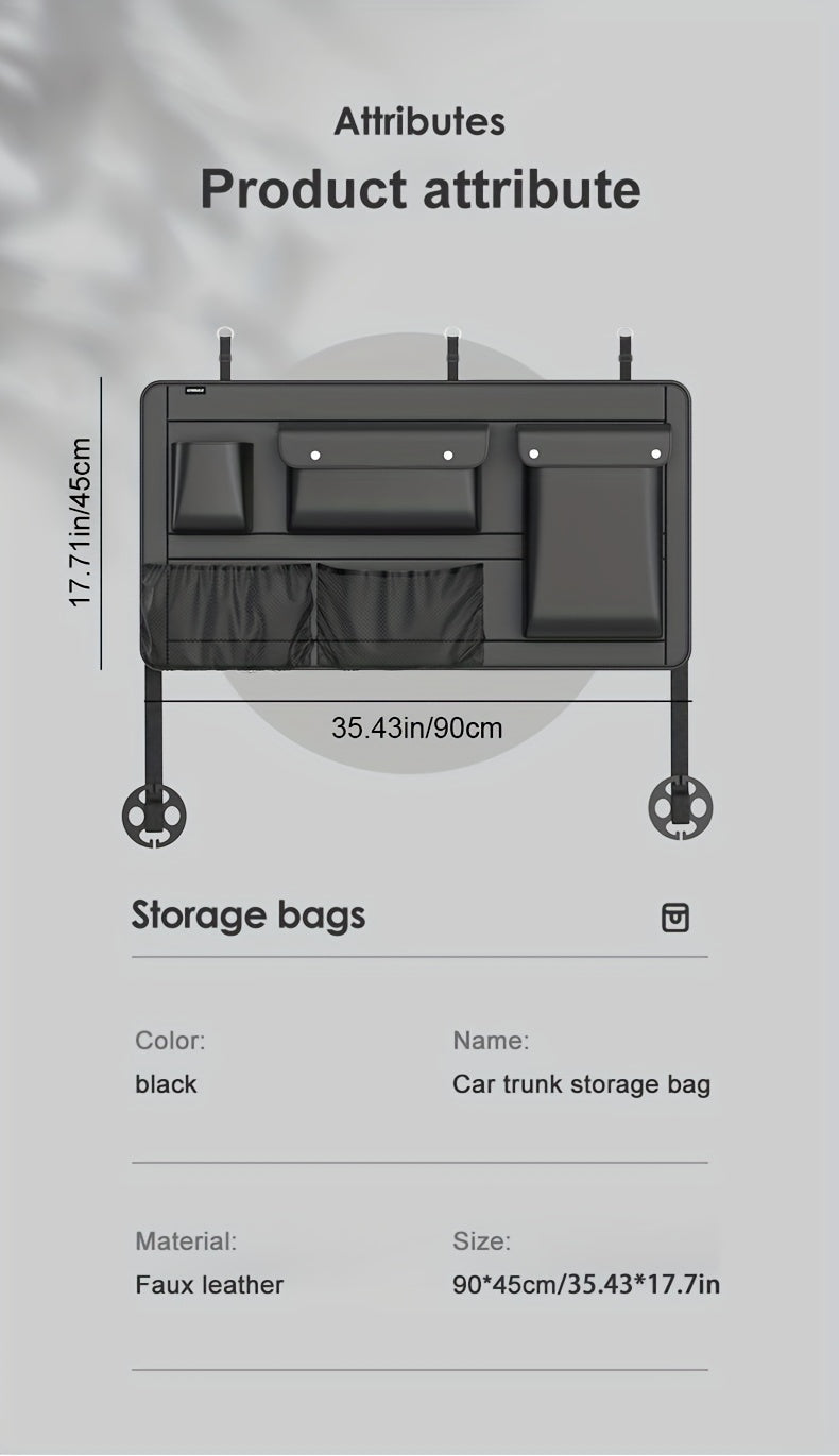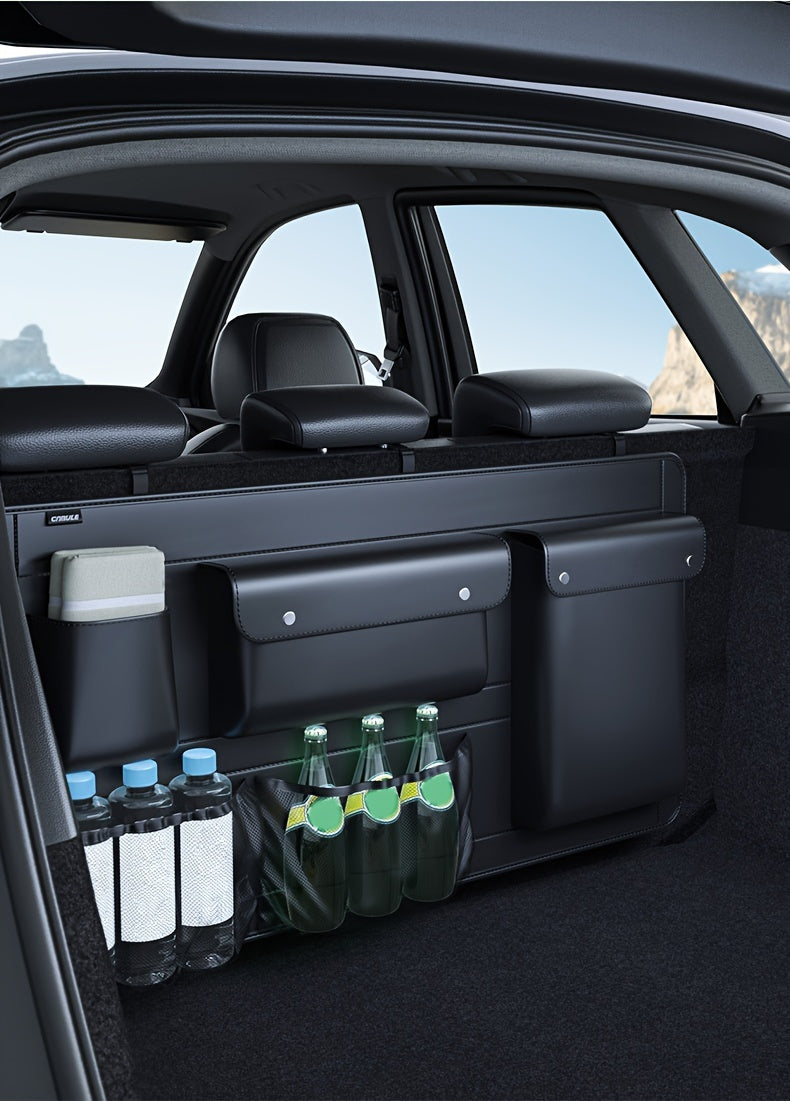 1pc Large Capacity Car Trunk Organizer With Partition Design, Multifunctional PU Leather Storage Box For Vehicle, Outdoor Storage Bag, Automotive Accessories