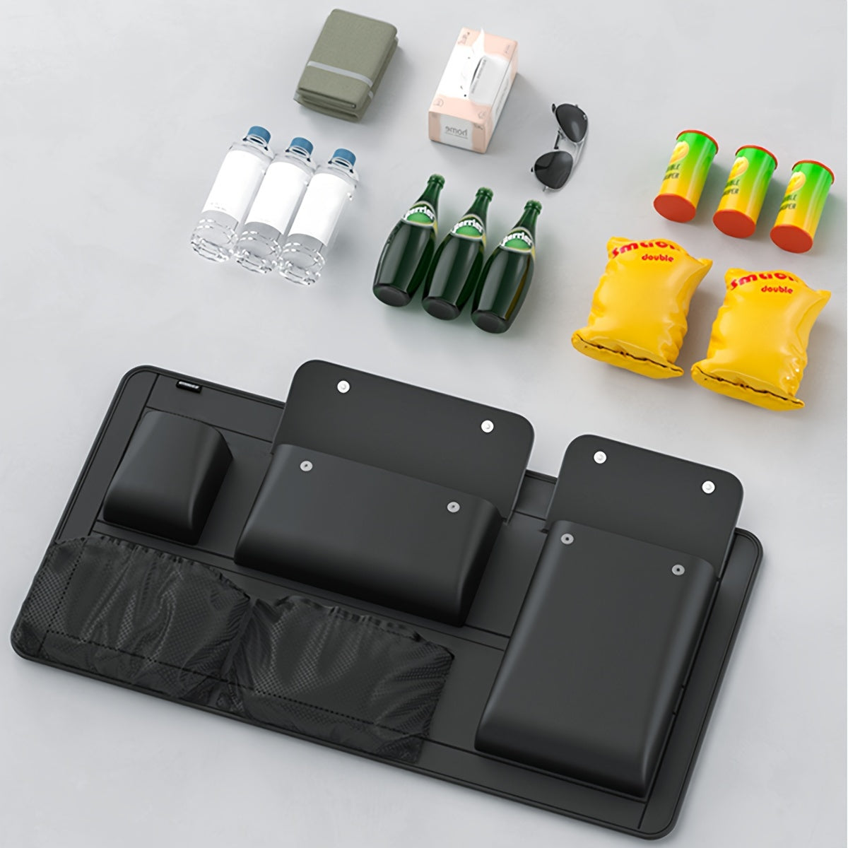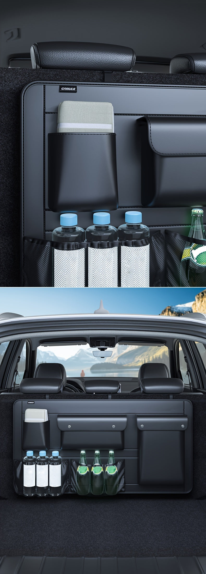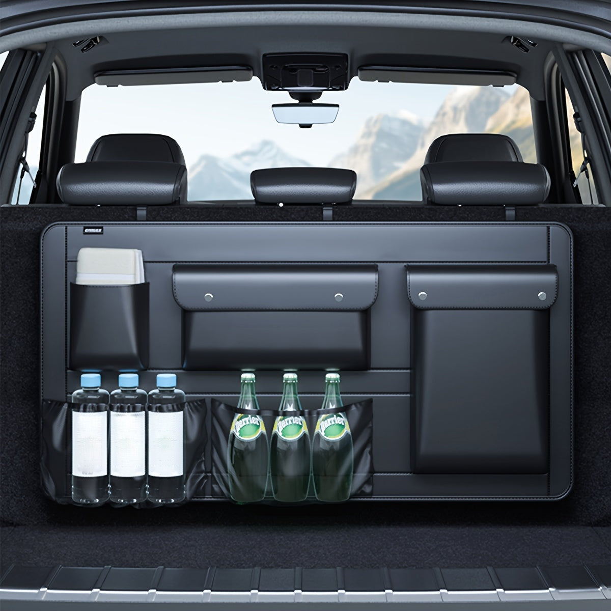 1pc Large Capacity Car Trunk Organizer With Partition Design, Multifunctional PU Leather Storage Box For Vehicle, Outdoor Storage Bag, Automotive Accessories