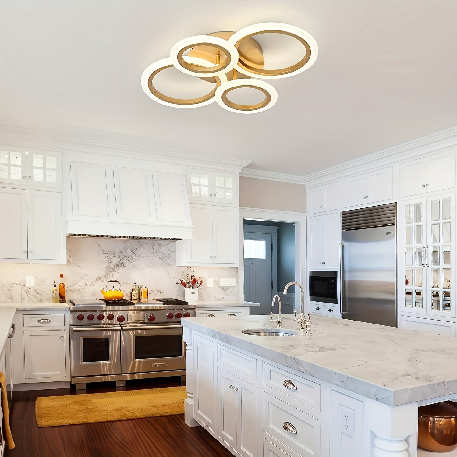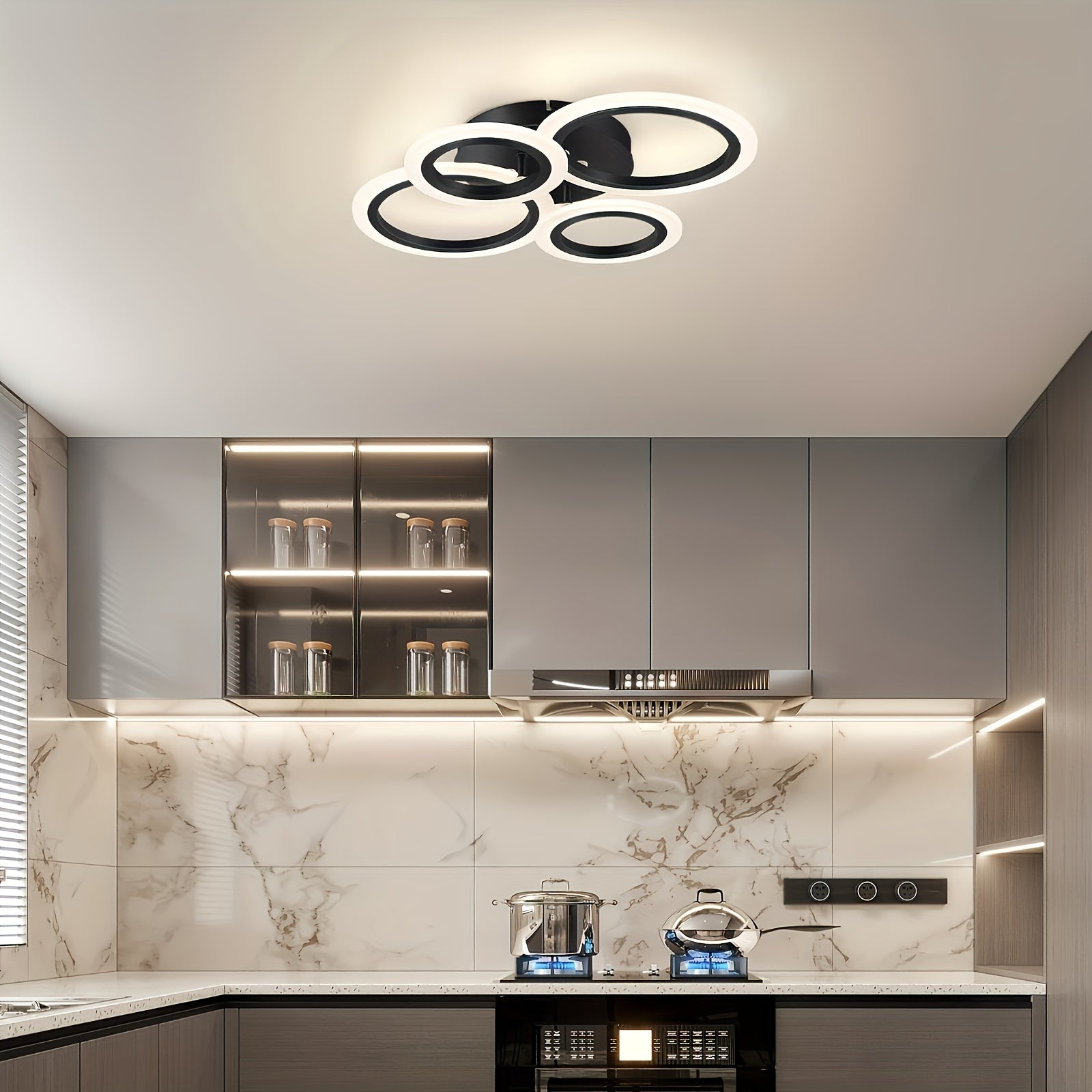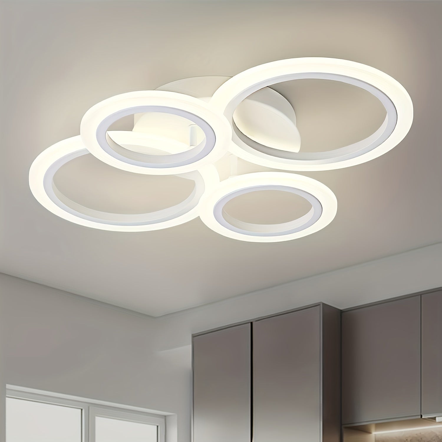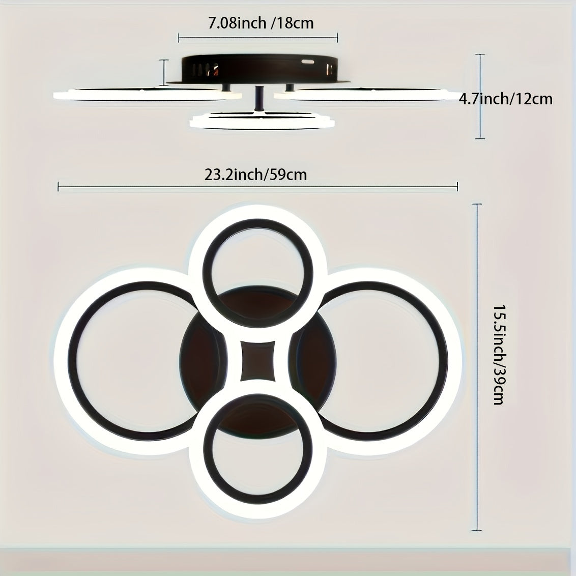1pc Modern LED Ceiling Light Fixture, 4-Ring Embedded Adjustable Brightness Lighting with 3000K-4500K-6000K Color Temperature Options, Metal Ceiling Mount with Removable Clamp, Hardwired for Kitchen, Bedroom, Living Room, Lau
