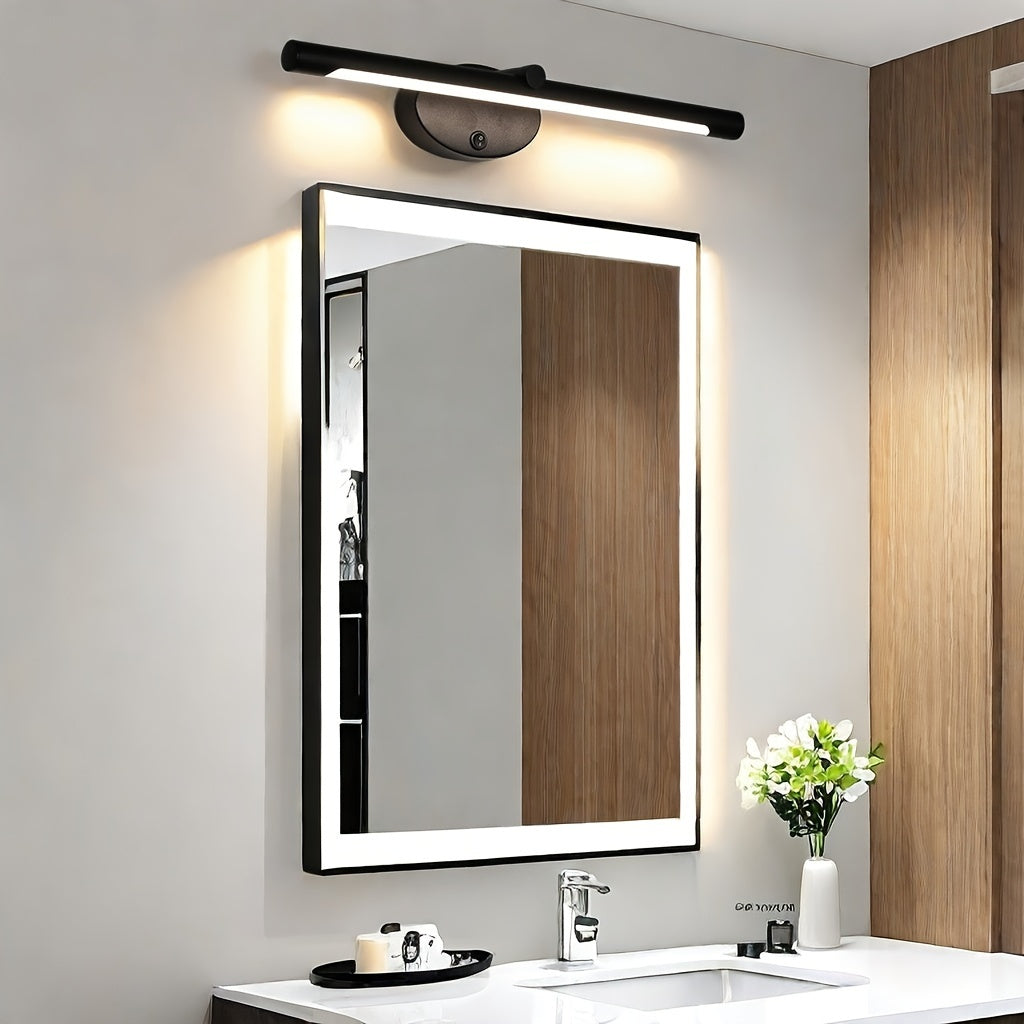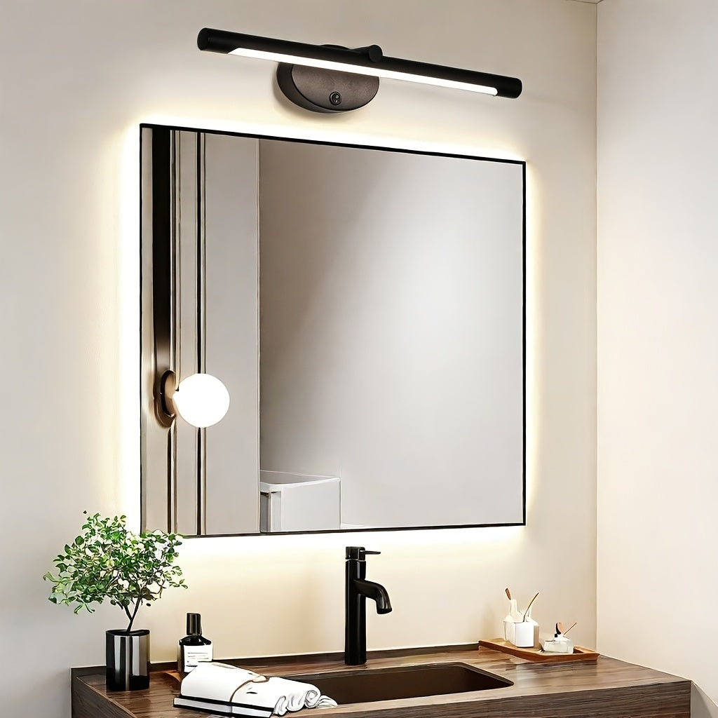 1pc Modern Matte Cast Iron LED Vanity Light Bar, 18-Inch Semi-Flush Mount Sconce with Switch Control, Down Orientation, Hard-Wired 110-240V, Non-Detachable Fixture for Dry Locations, 3000k/4000k/5000k