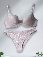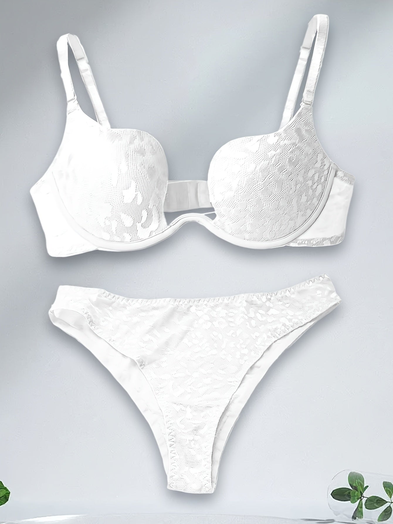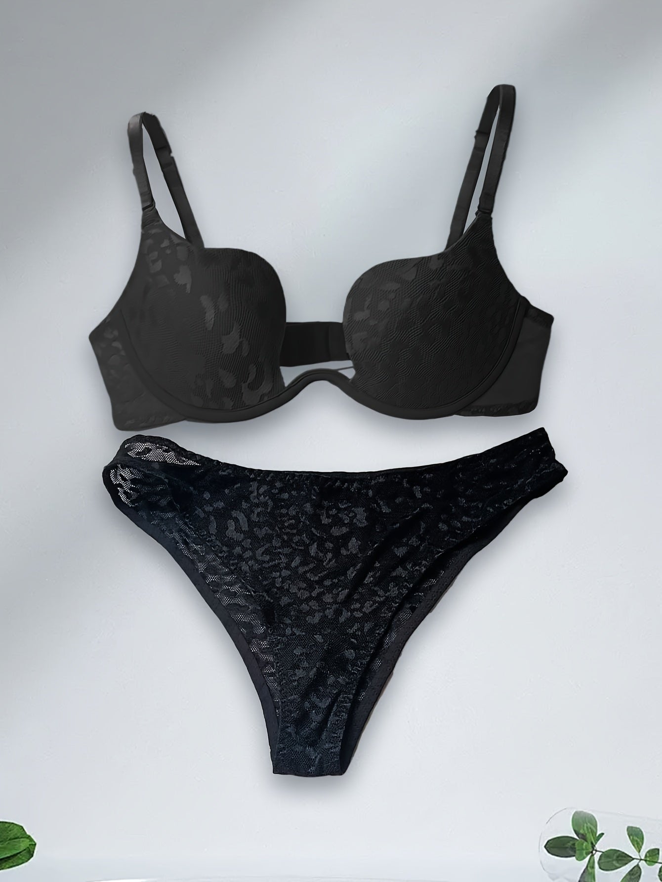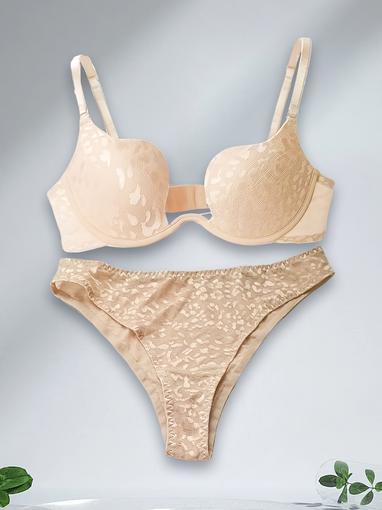1set Elegant Leopard Print Lingerie Set for Women - U-Shape Bra and Panty Set with Non-Removable Pads, Knitted Fabric, Medium Support - Polyester and Nylon Blend, Adult Underwear