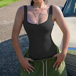 2025 New Sexy Square Neck Tummy Control Thong Body Shaper Seamless Sculpting Bodysuit Shapewear Women Ribbed Slimming Tank Tops