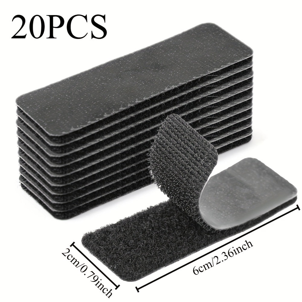 20pcs Heavy Duty Self-Adhesive Hook and Loop Strips, Black Carbon Fiber Texture, Sticky Back Tape Fastener for Home or Office - Ideal for DIY Projects, Mounting Without Holes or Screws