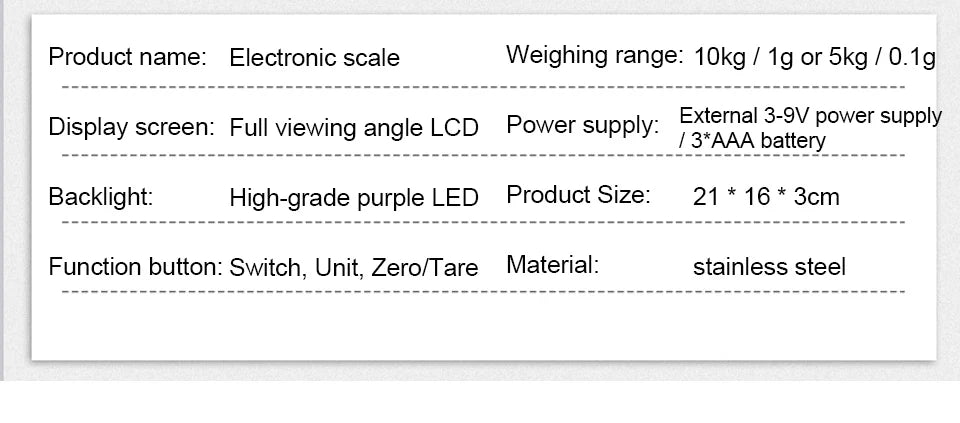 2. Specification: 10kg/1g, 3kg/0.1g,5kg/0.1g