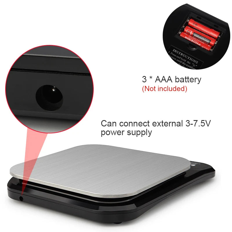 3. Dual power supply system: can be connected to an external 3-9V power supply or 3pcs AAA battery(package not include battery), it has functions such as on/off, tare reset, 120 second automatic shutdown without operation, unit conversion, and overload protection