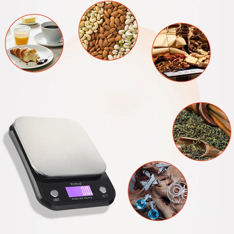 3/5/10kg Digital Kitchen Scale High Accuracy Food Scale Stainless Electronic Balance Measuring Grams Scales for Cooking Baking