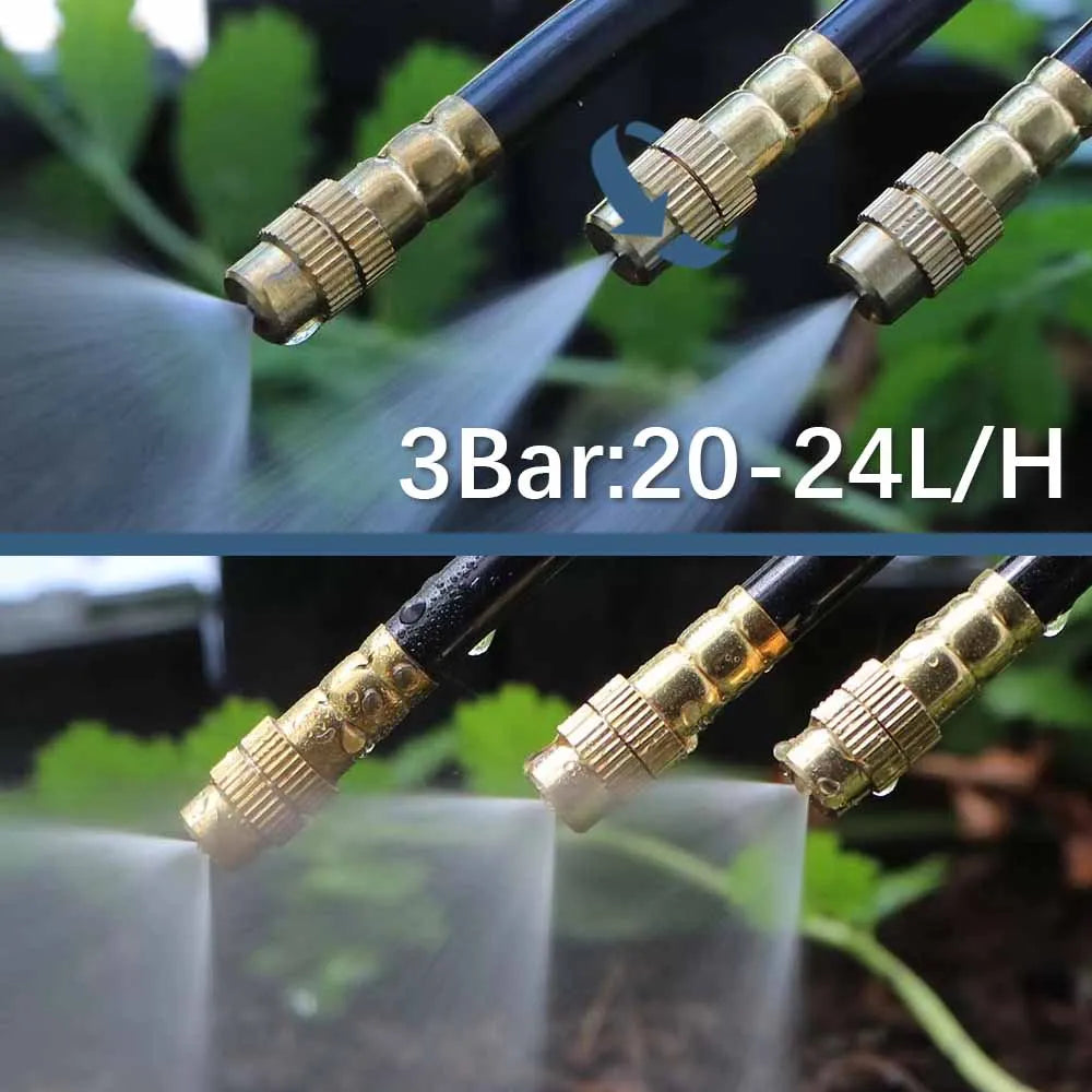 - Nozzles: Atomizing nozzles is 360° bend adjustable.The head can be rotated to adjust the size of the spray.The interior is coated with metal and connected with tee joints