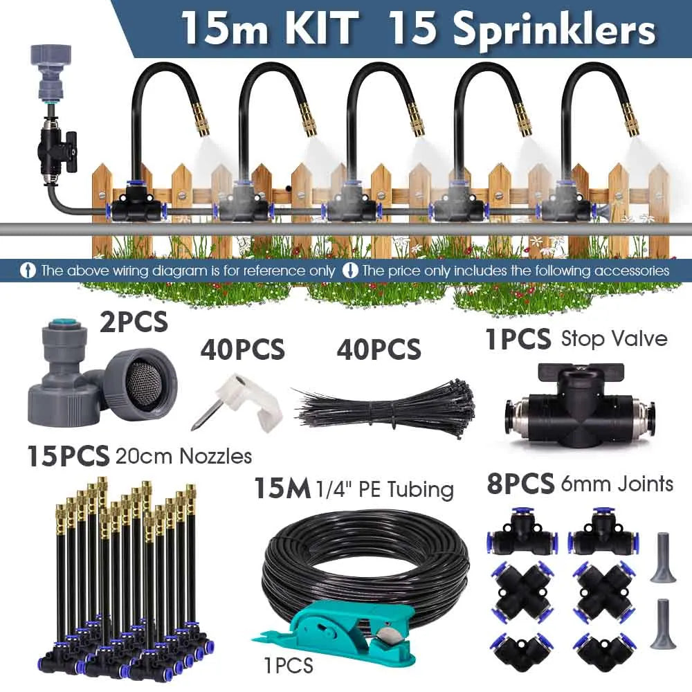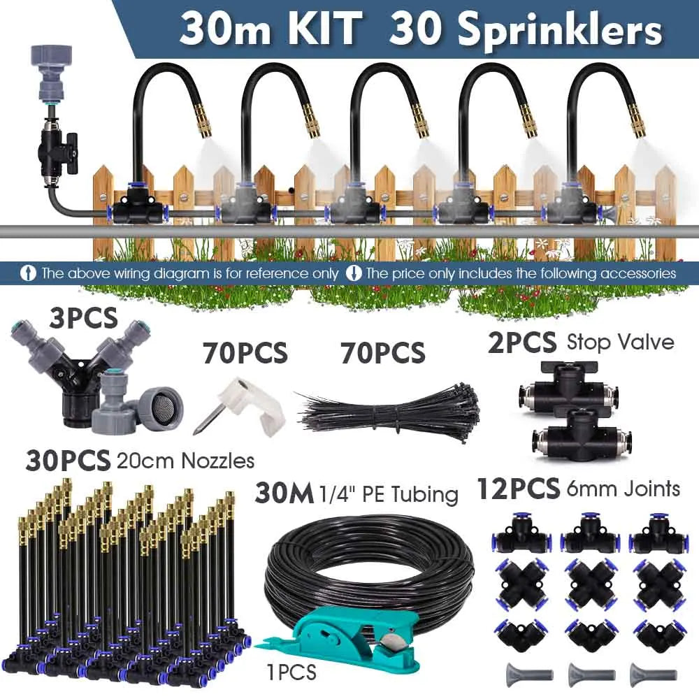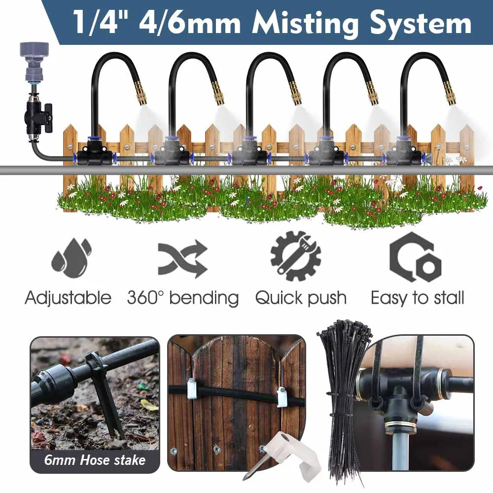 30-5m 1/4" 4/6mm Misting Cooling System 360° Free-bend Adjustable Nozzle Atomizer Sprayer for Outdoor Garden Irrigation Watering